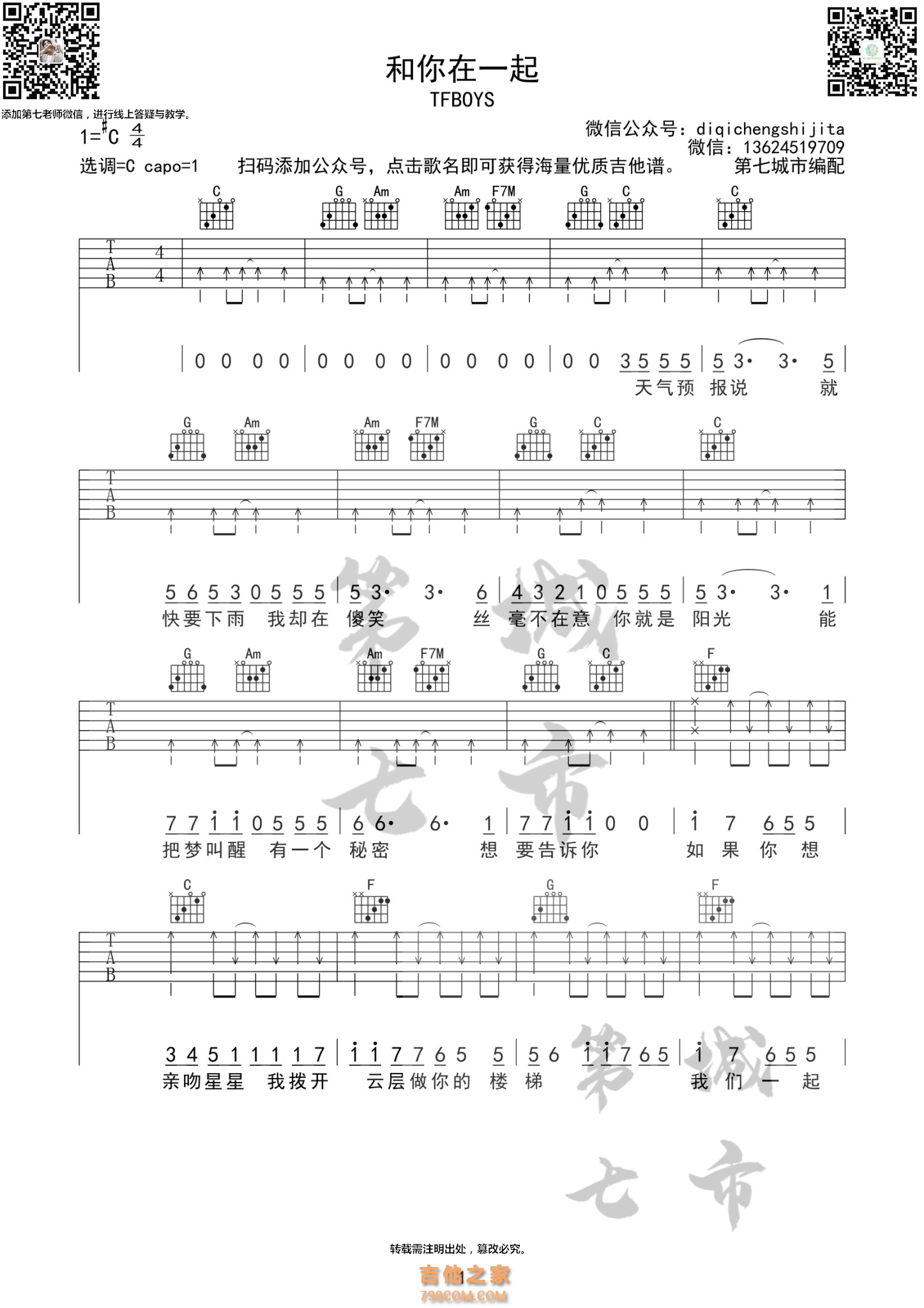 和你在一起 TFBOYS 吉他谱 - 吉他谱