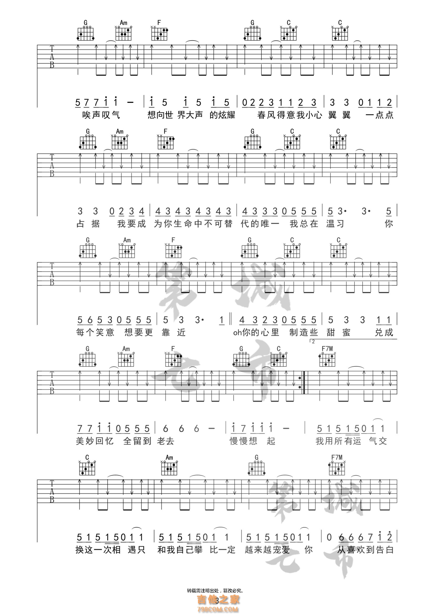 为你而来吉他谱_李健_G调扫弦版弹唱六线谱_高…