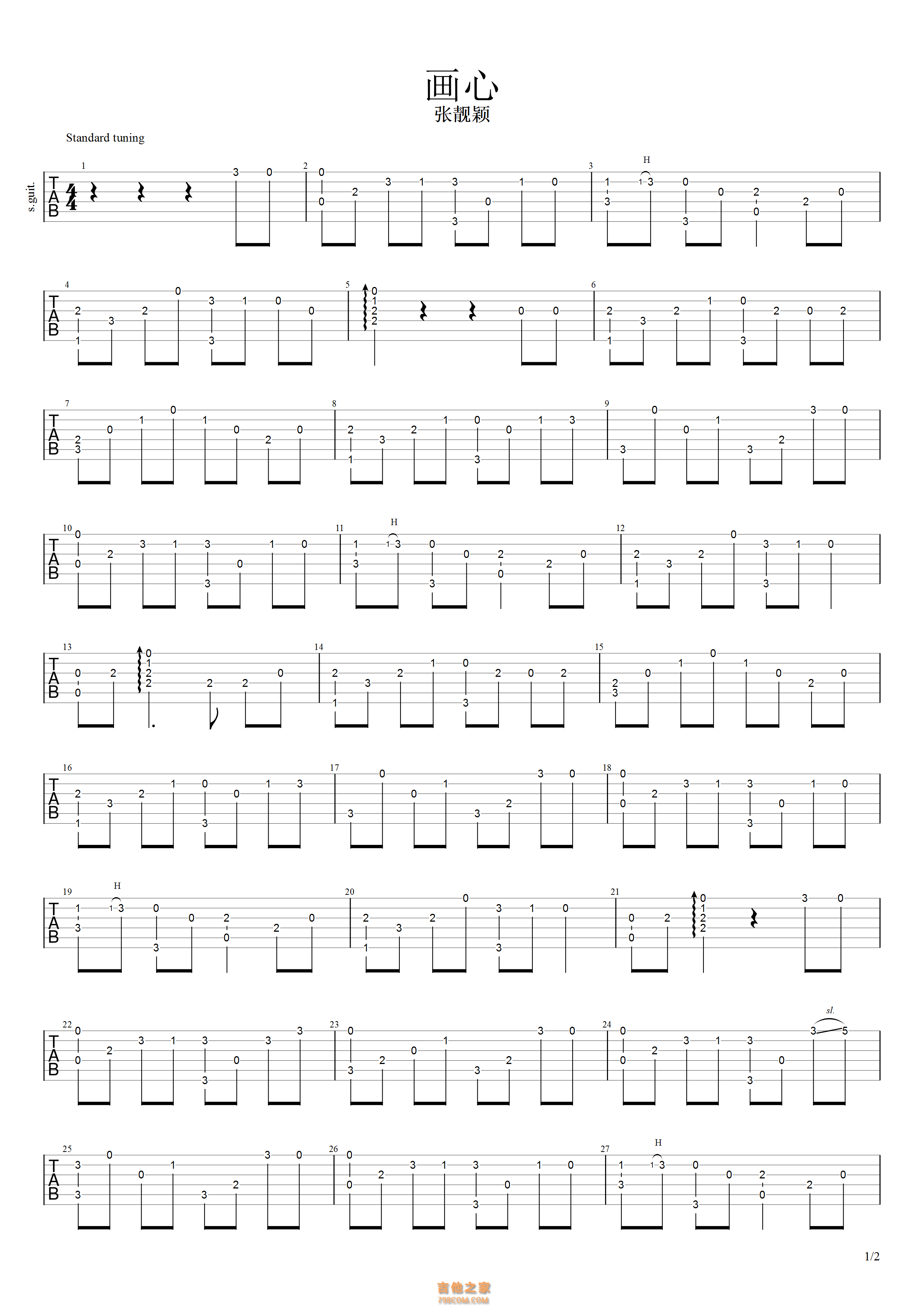 画心指弹吉他谱 高清版 张靓颖 - 简单指弹吉他谱