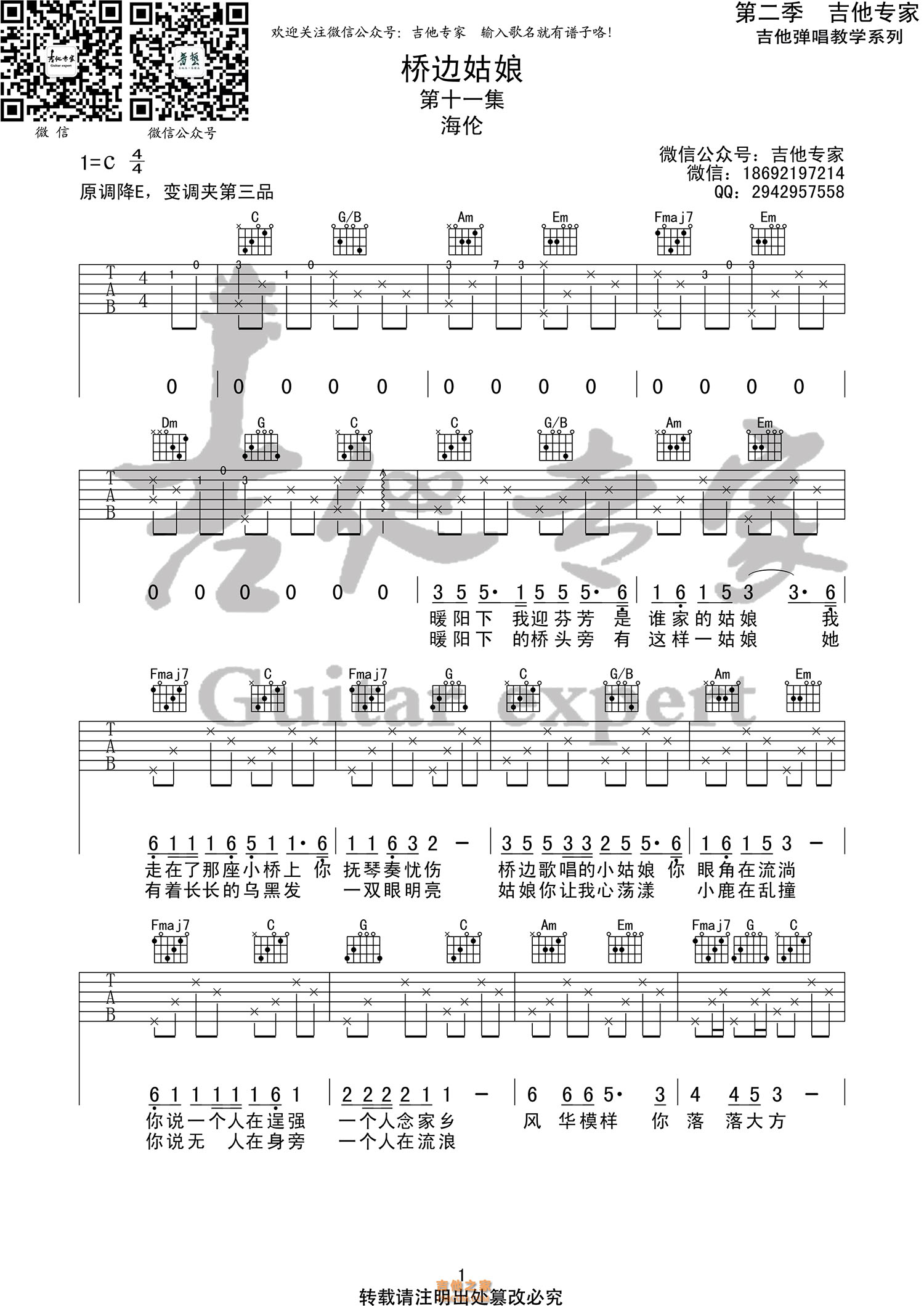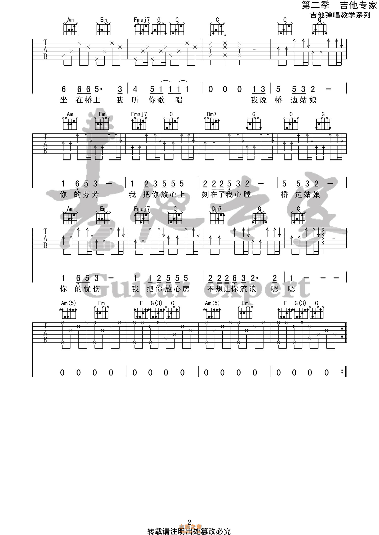 桥边姑娘吉他谱原版 - 吉他谱