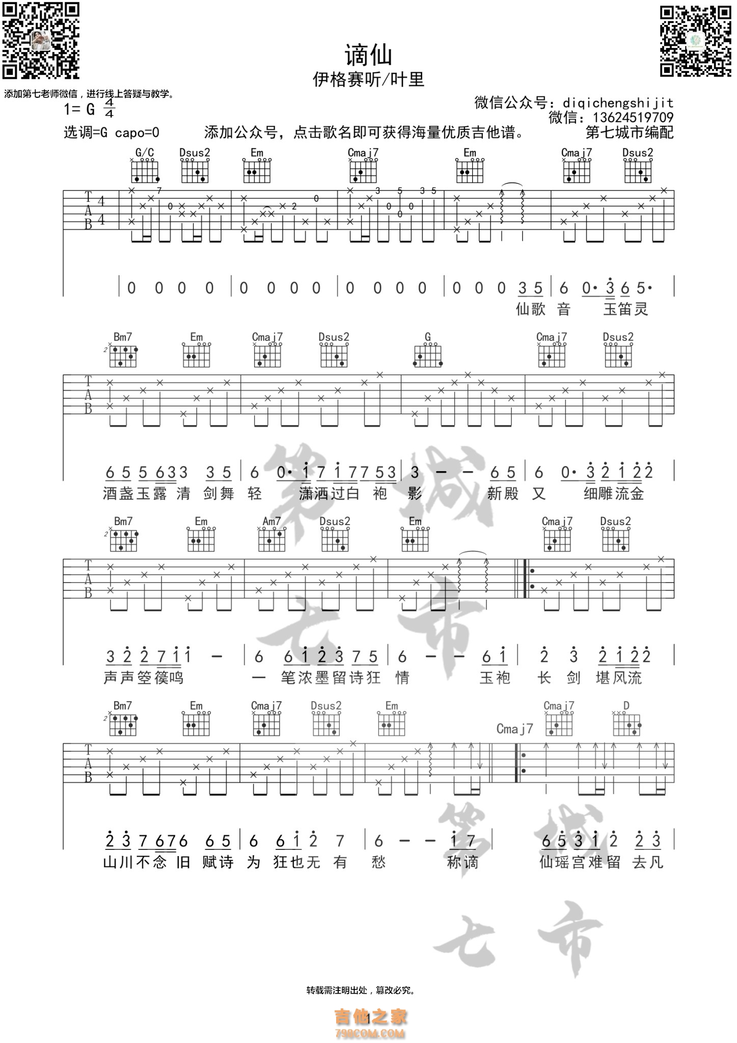 谪仙 伊格赛听 吉他谱 - 吉他谱