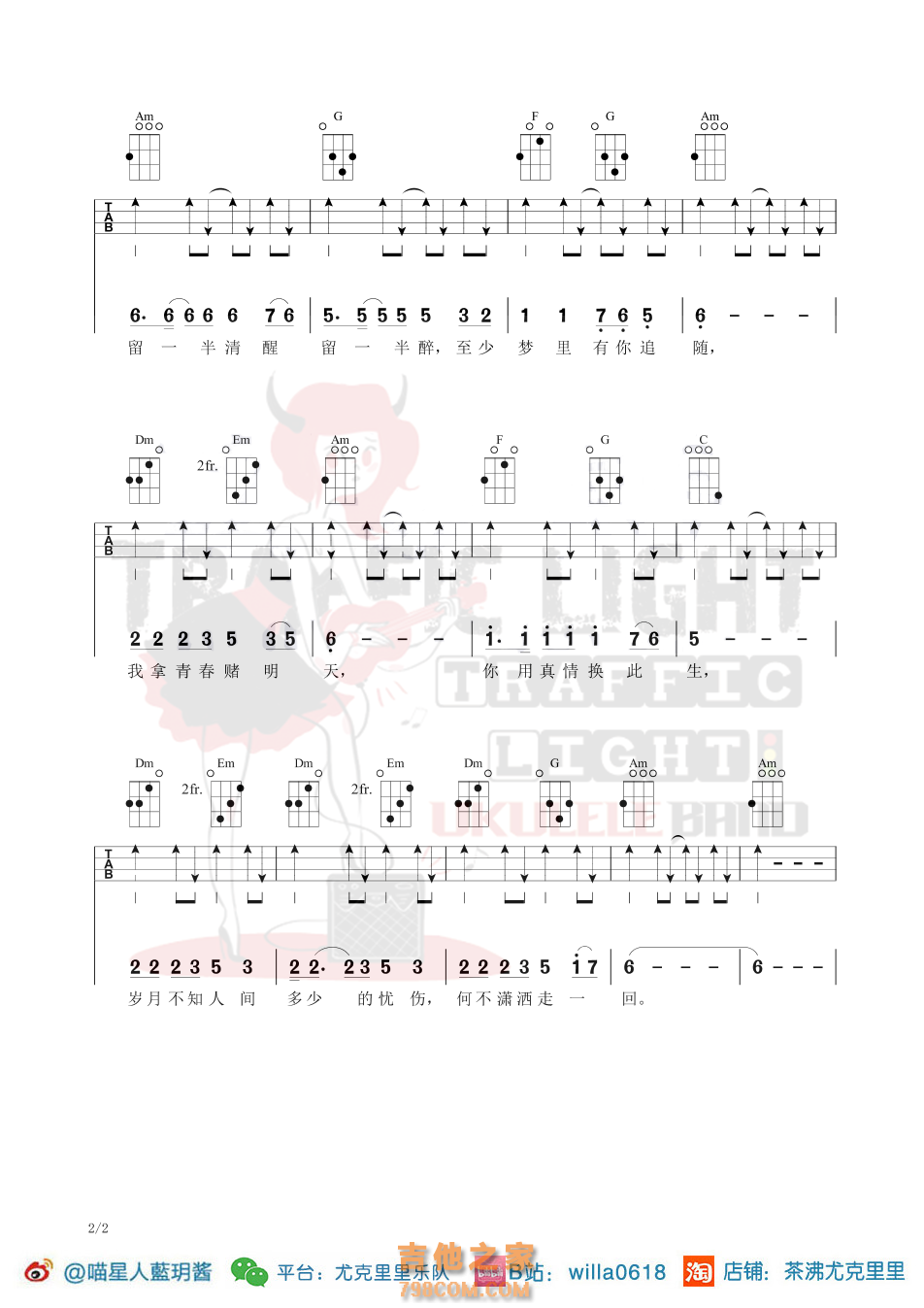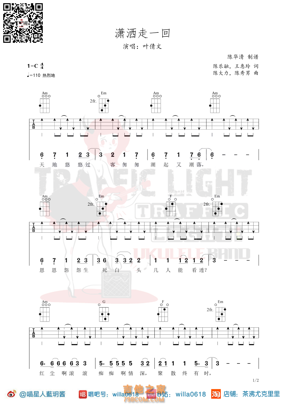 潇洒走一回尤克里里弹唱曲谱-叶倩文-茶沸尤克里里 - 尤克里里谱
