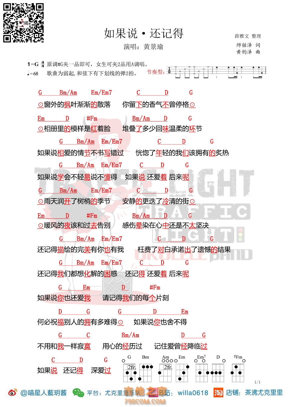 《如果说·还记得》尤克里里谱-黄景瑜-茶沸尤克里里 - 尤克里里谱