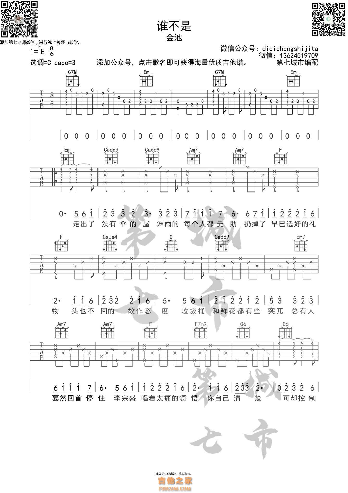 don't cry吉他谱采用了C调指法,由弦心距编配完成。《Don't cry》这首歌曲深受喜爱,在这首歌曲之中枪花乐队一改从前的愤怒激烈,沧桑哀婉低吟出一段令人荡气回肠的柔情曲,而歌曲表达出的无奈和失意让人动容。这首歌曲有很多个亮点,不止在歌收尾的地方,在歌起时就… -