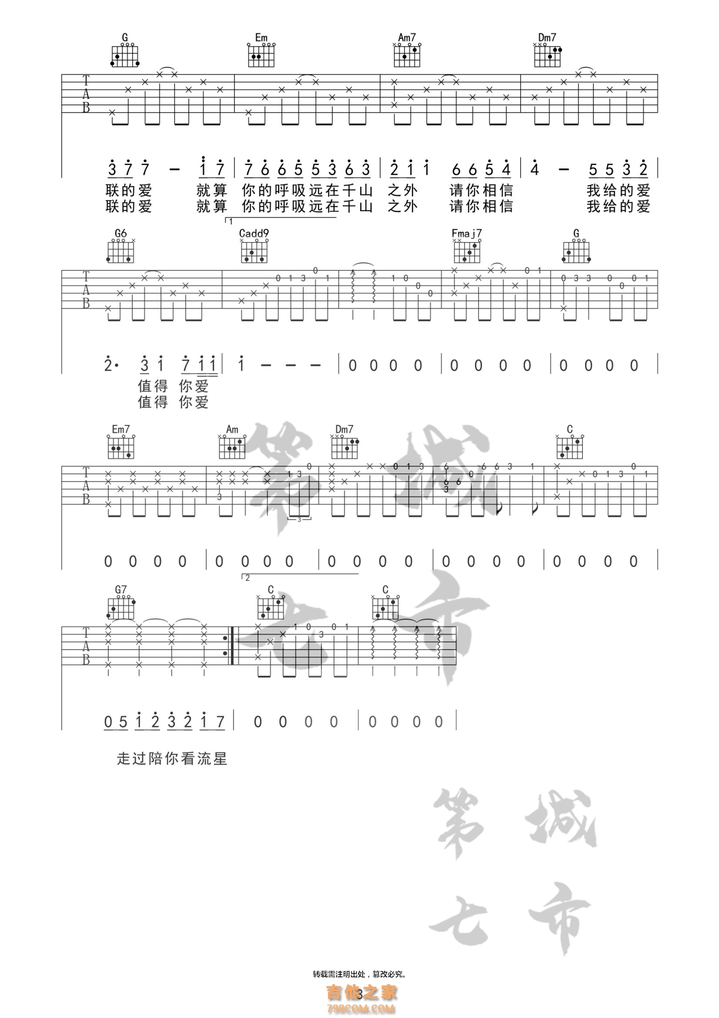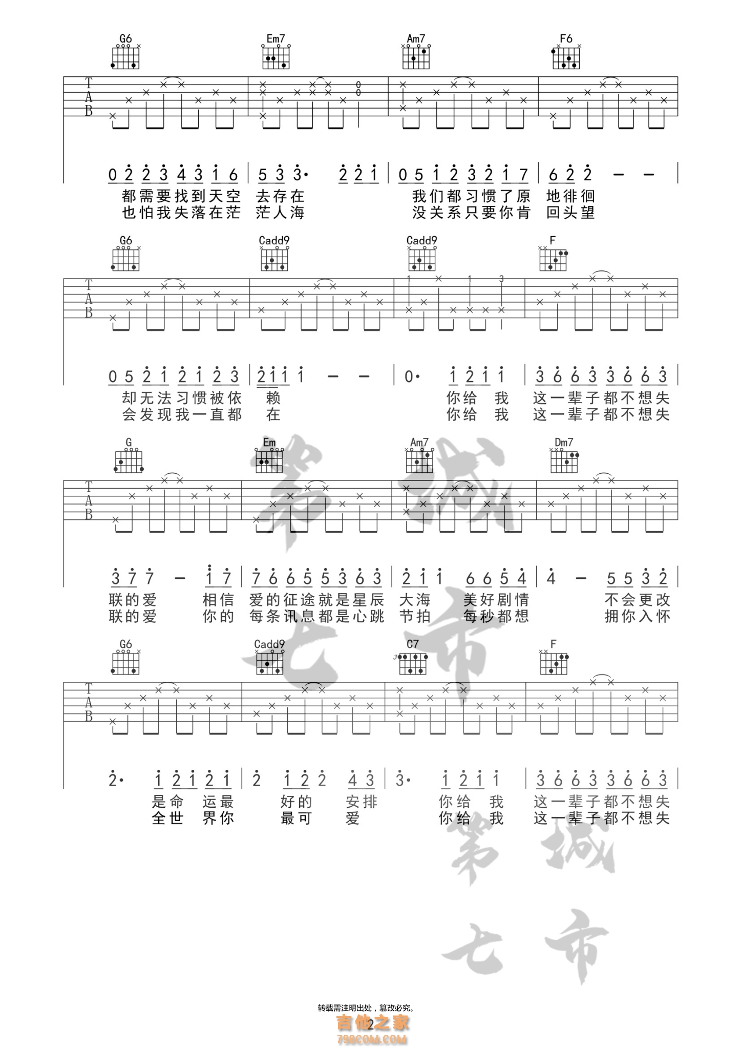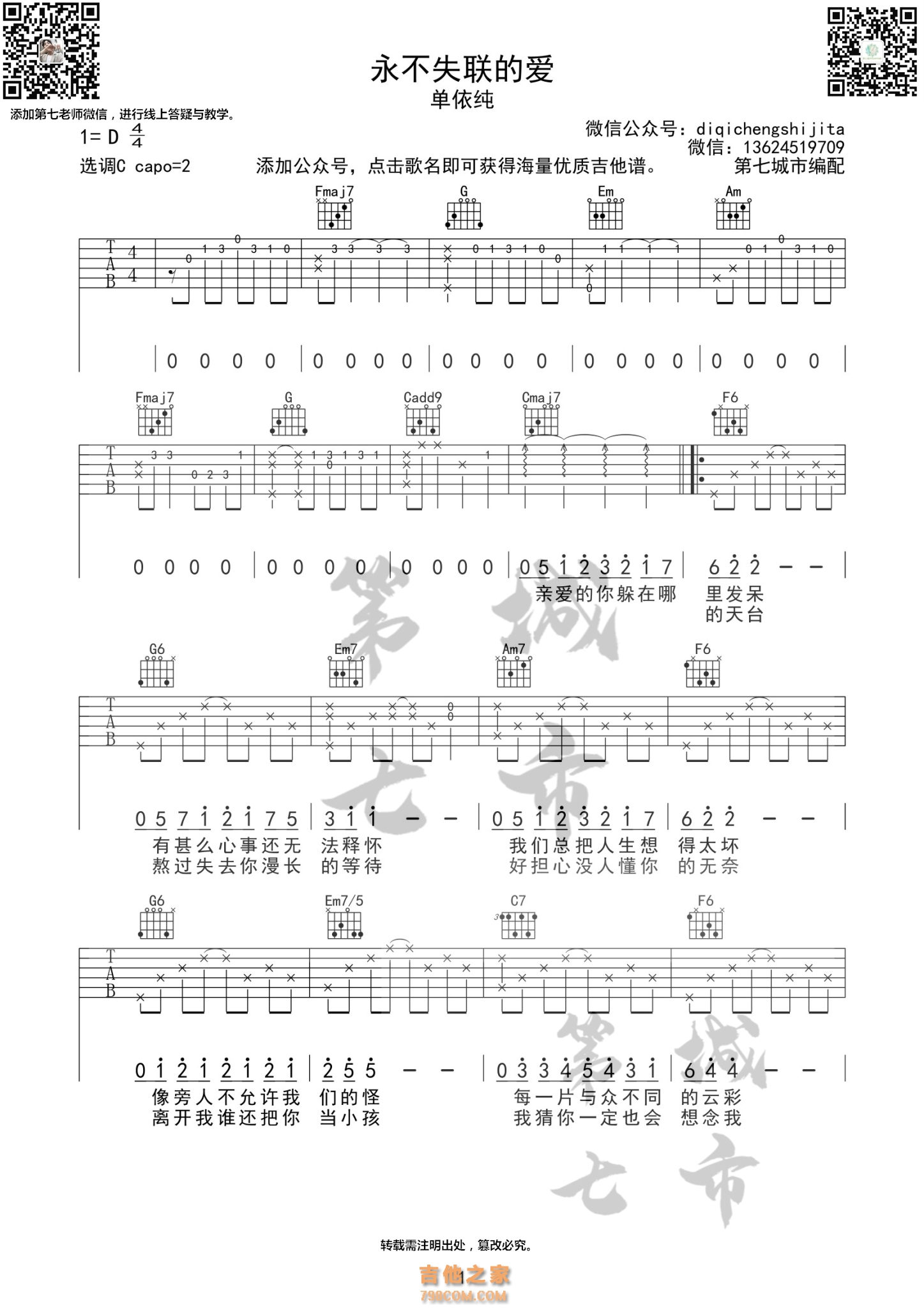 永不失联的爱 单依纯 吉他谱 第七城市编配 - 吉他谱