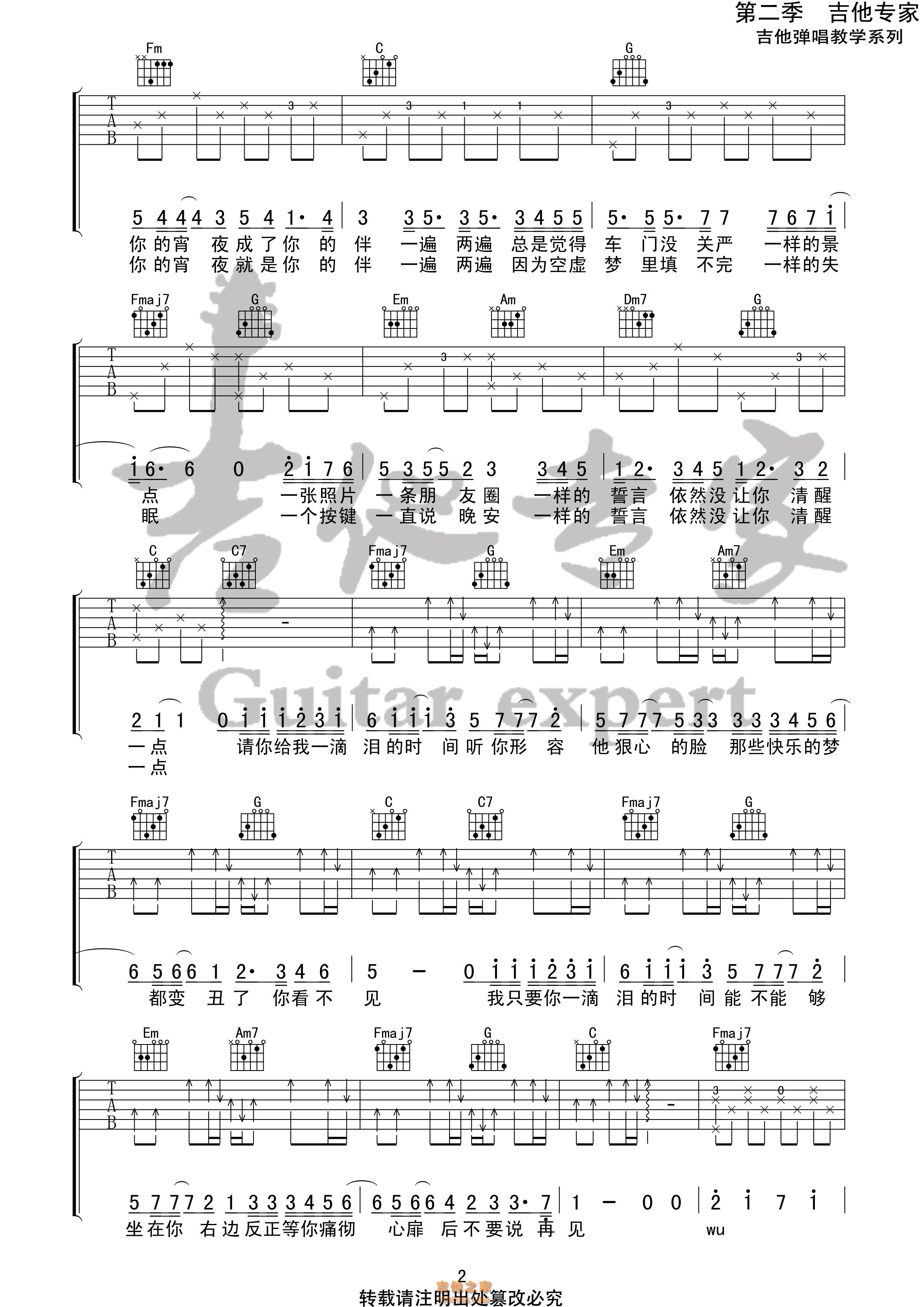 don't cry吉他谱采用了C调指法,由弦心距编配完成。《Don't cry》这首歌曲深受喜爱,在这首歌曲之中枪花乐队一改从前的愤怒激烈,沧桑哀婉低吟出一段令人荡气回肠的柔情曲,而歌曲表达出的无奈和失意让人动容。这首歌曲有很多个亮点,不止在歌收尾的地方,在歌起时就… -