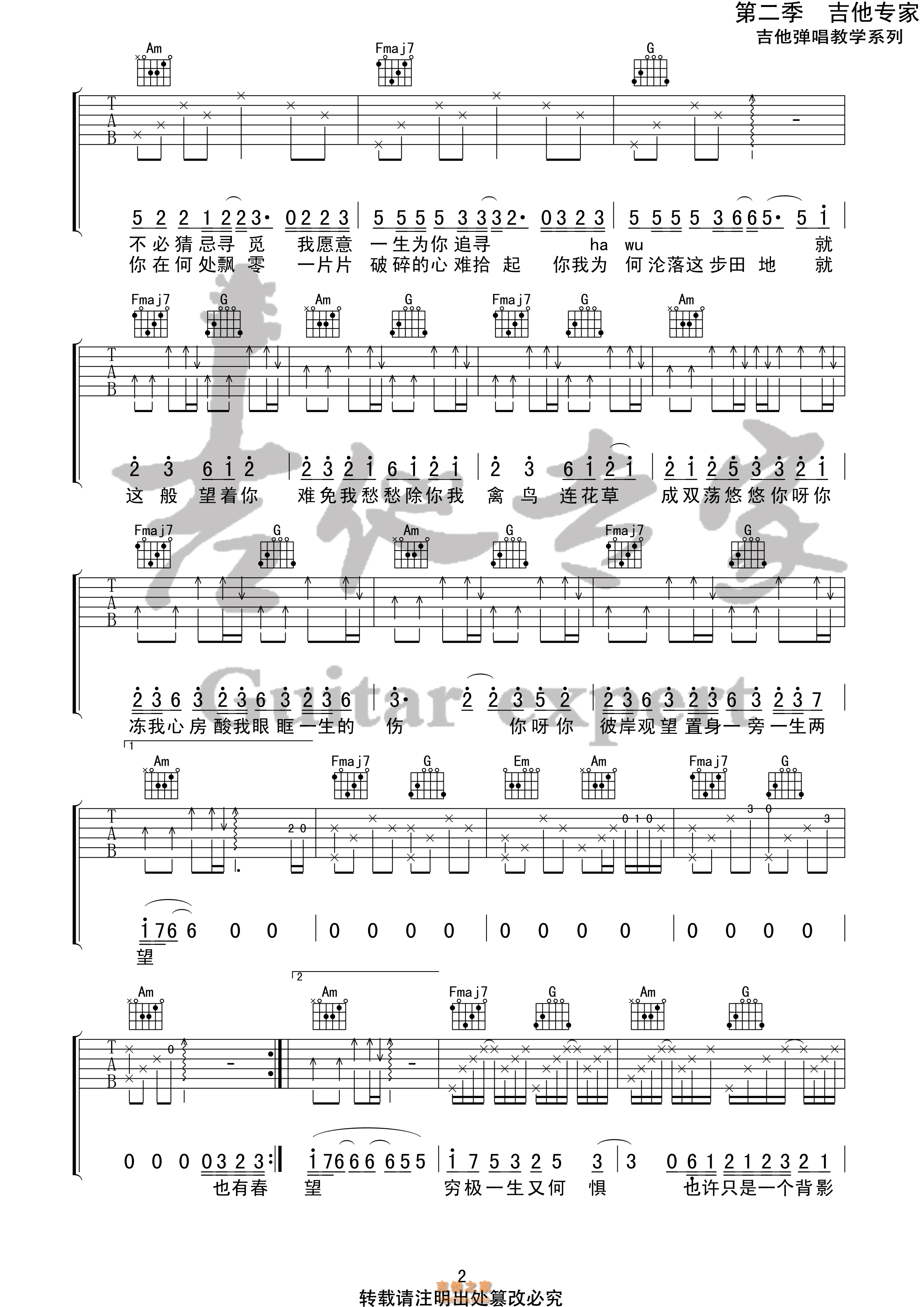 don't cry吉他谱_C调精选版_弦心距编配_枪花乐…