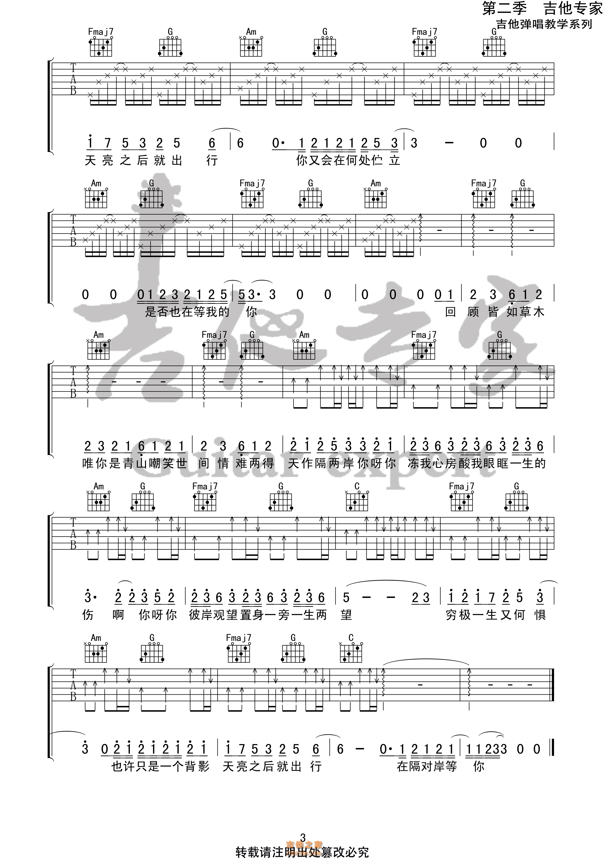 青花吉他谱_周传雄_G调扫弦版弹唱谱_图片六线谱