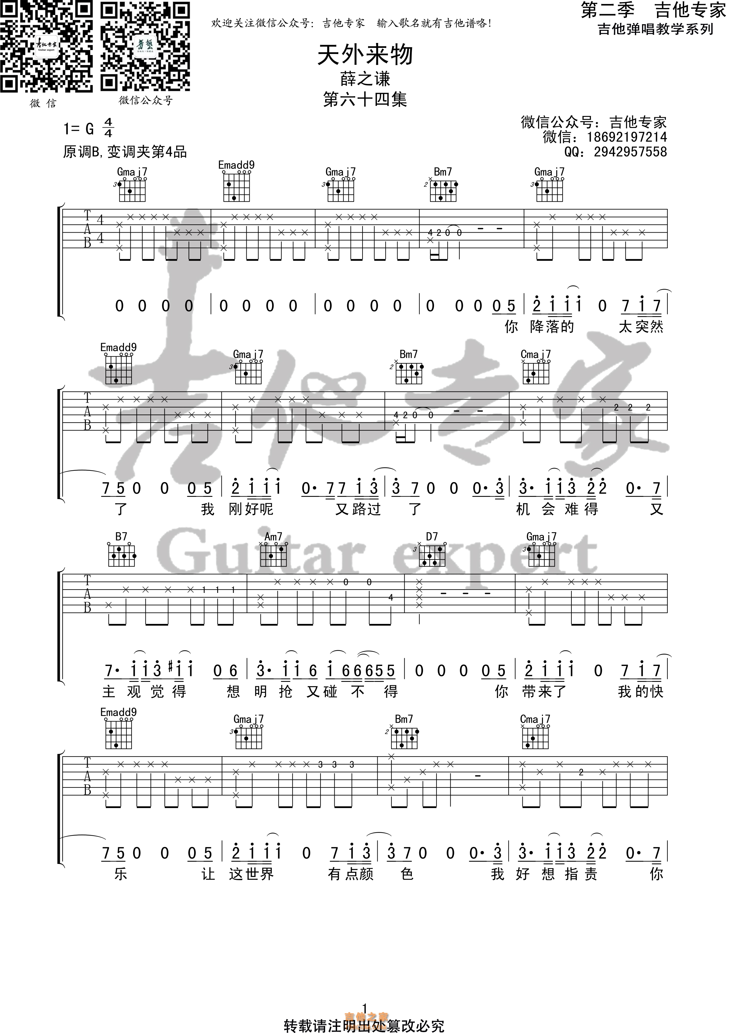 天外来物 薛之谦原版吉他谱 - 吉他谱