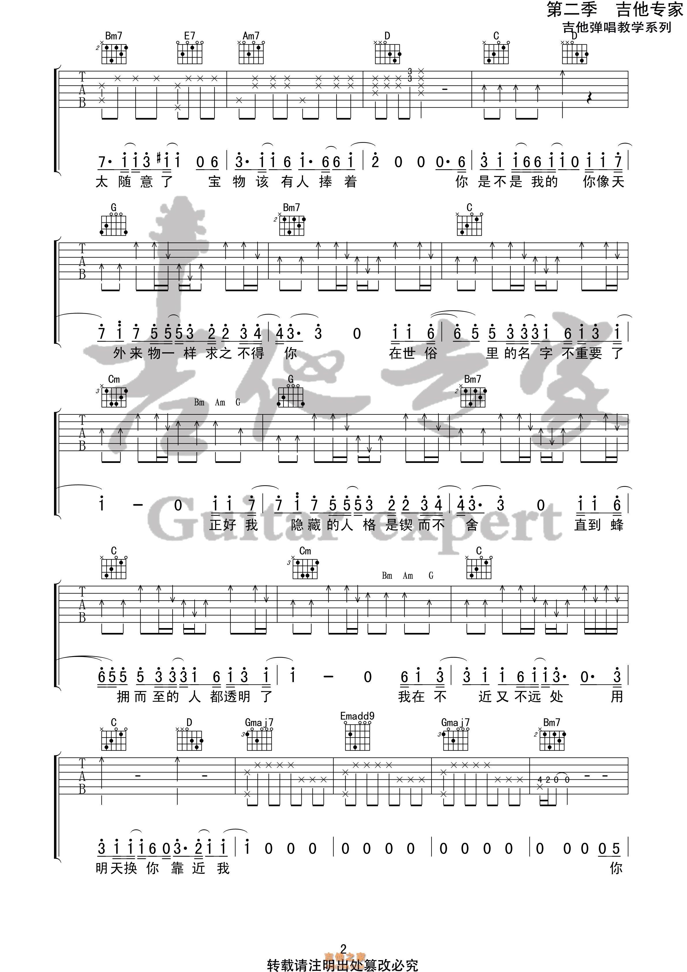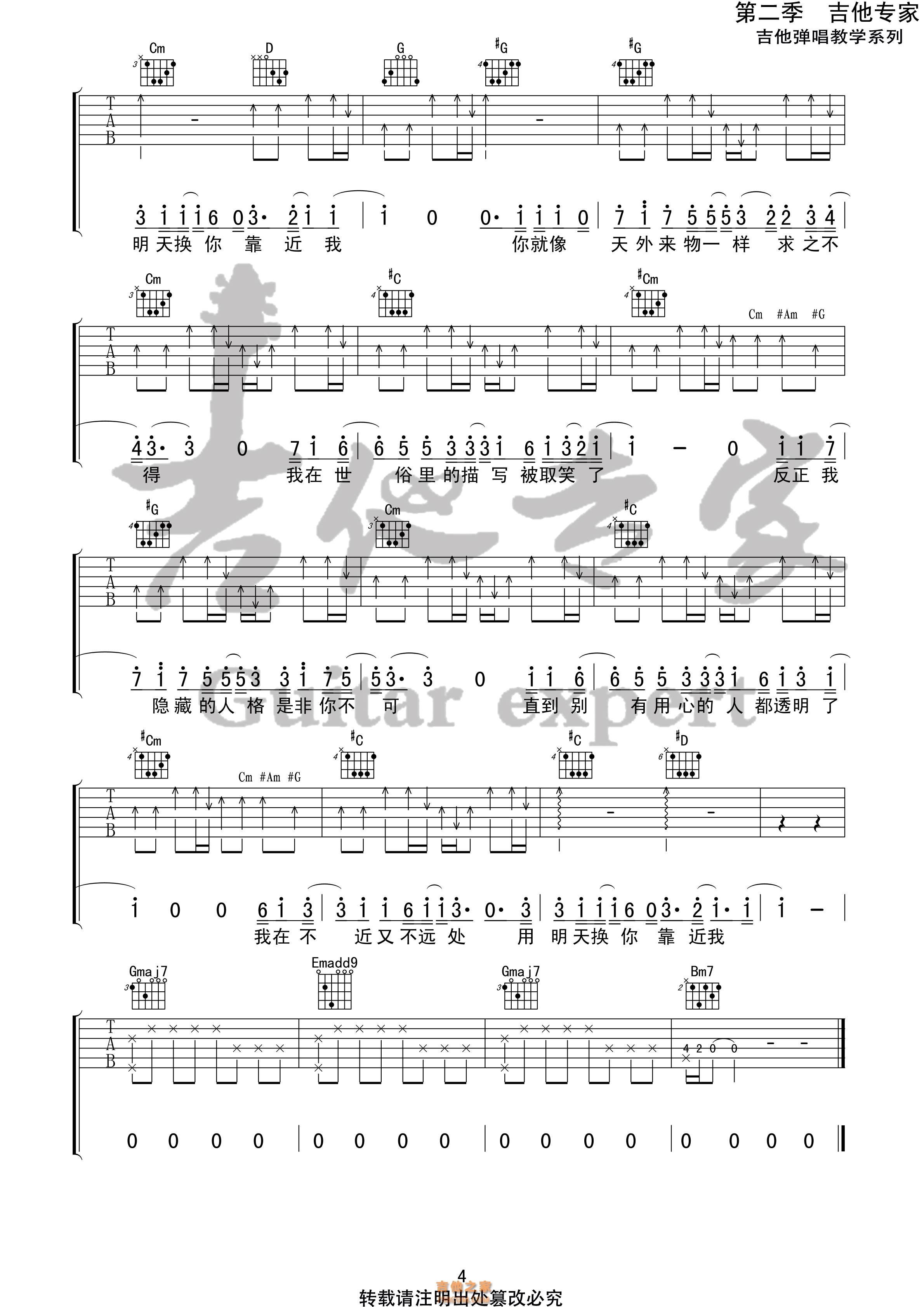 don't cry吉他谱_C调精选版_弦心距编配_枪花乐…