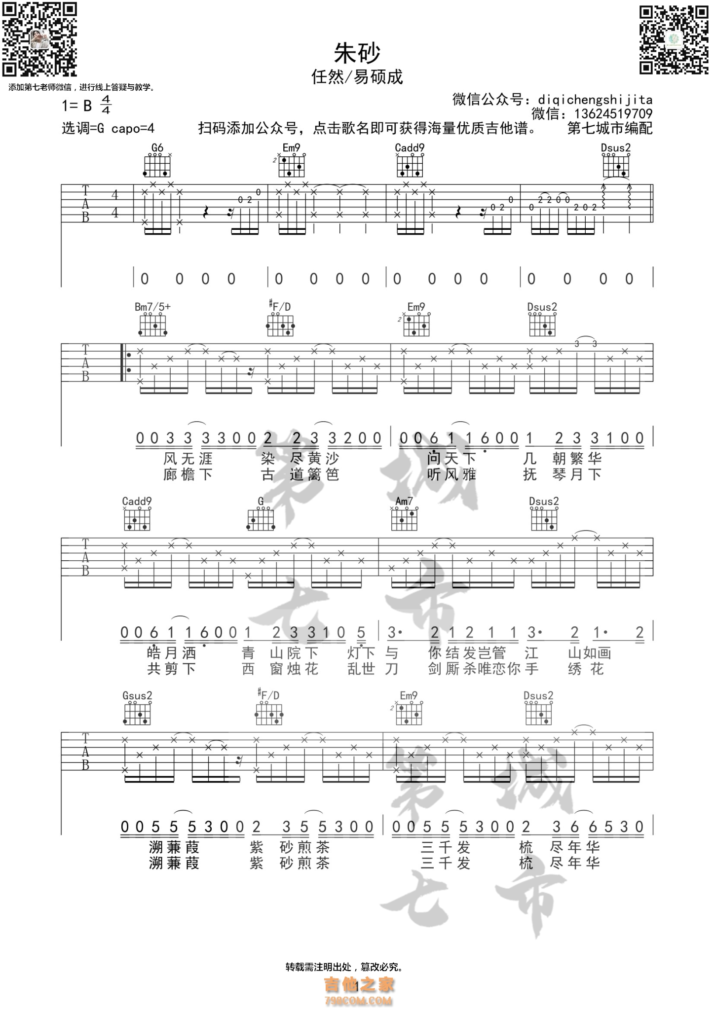 朱砂 任然/Xun易硕成 吉他谱 - 吉他谱