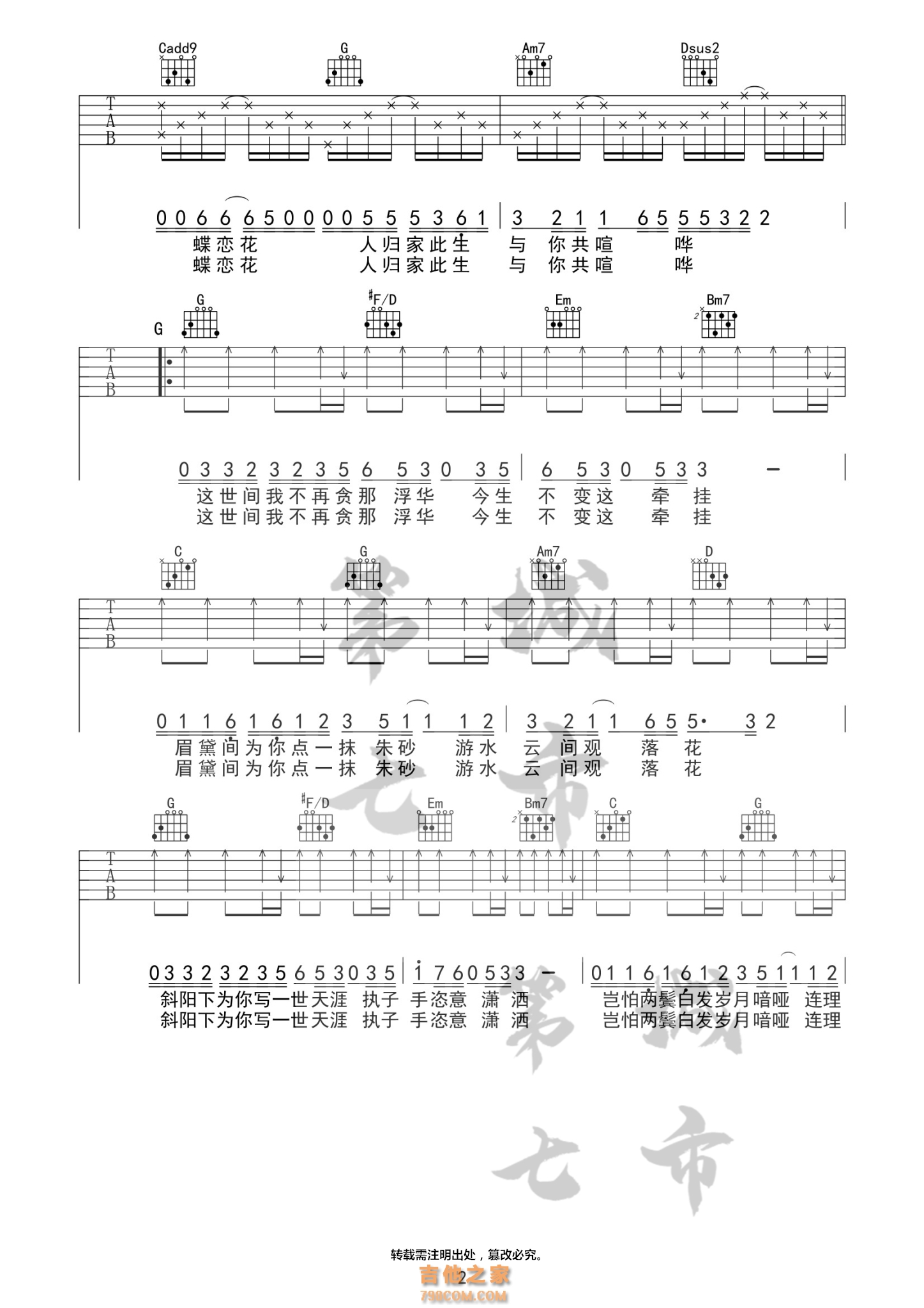 青花吉他谱_周传雄_G调扫弦版弹唱谱_图片六线谱