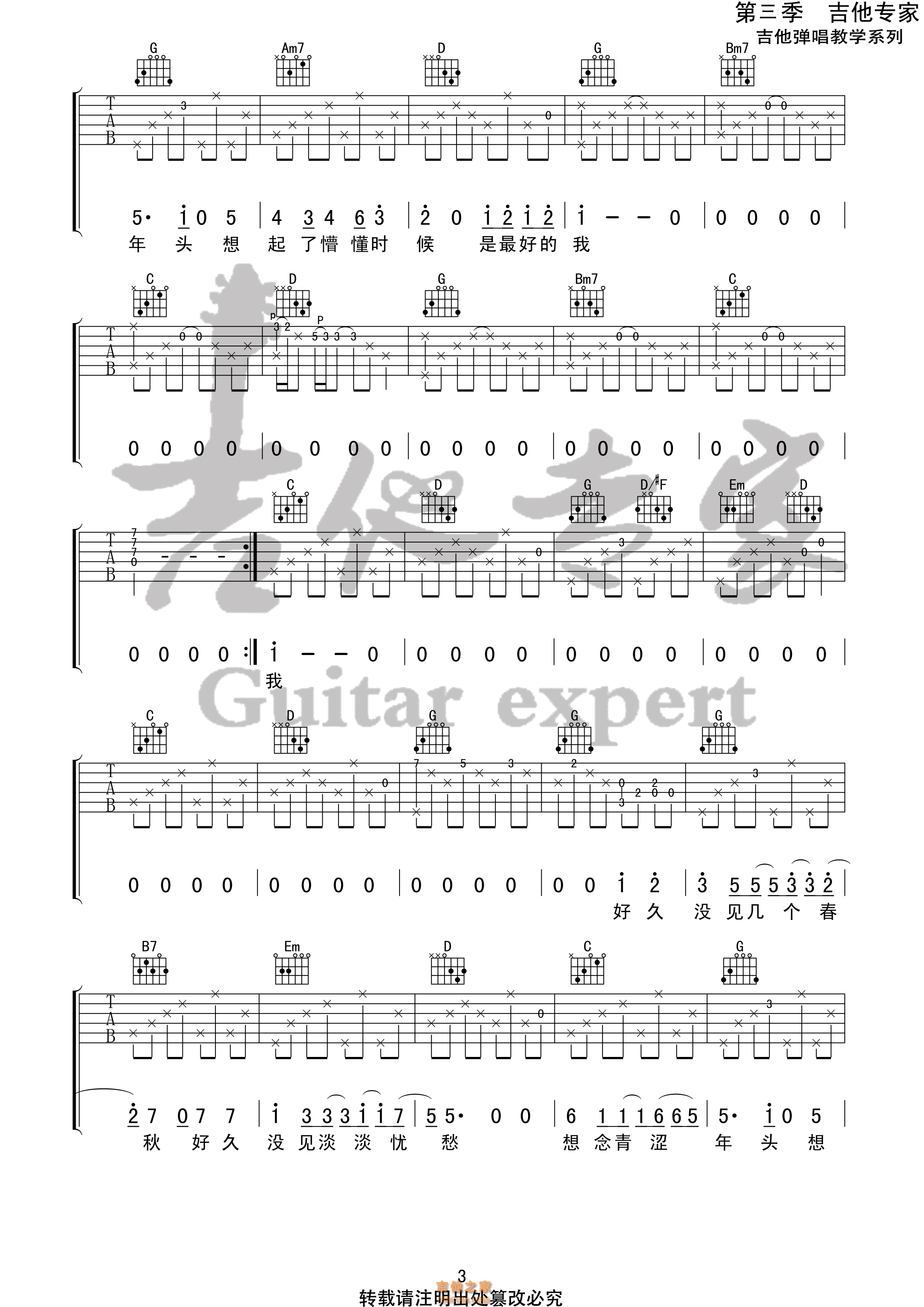 青花吉他谱_周传雄_G调扫弦版弹唱谱_图片六线谱
