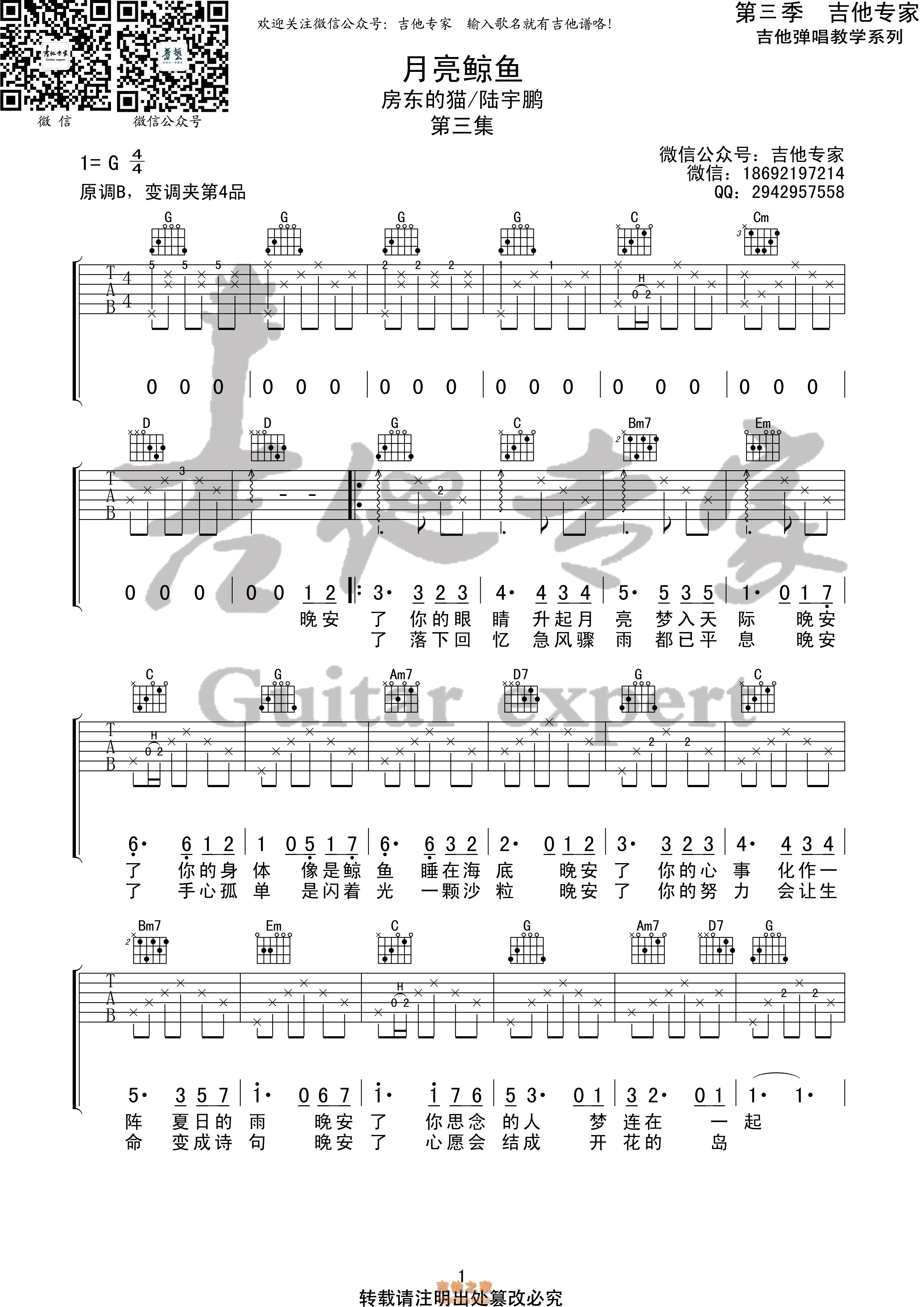 月亮鲸鱼 房东的猫原版吉他谱 - 吉他谱