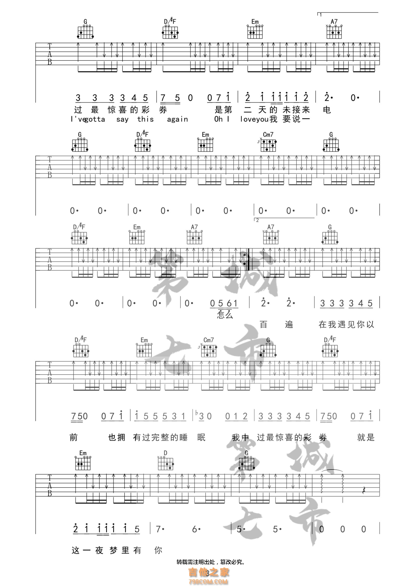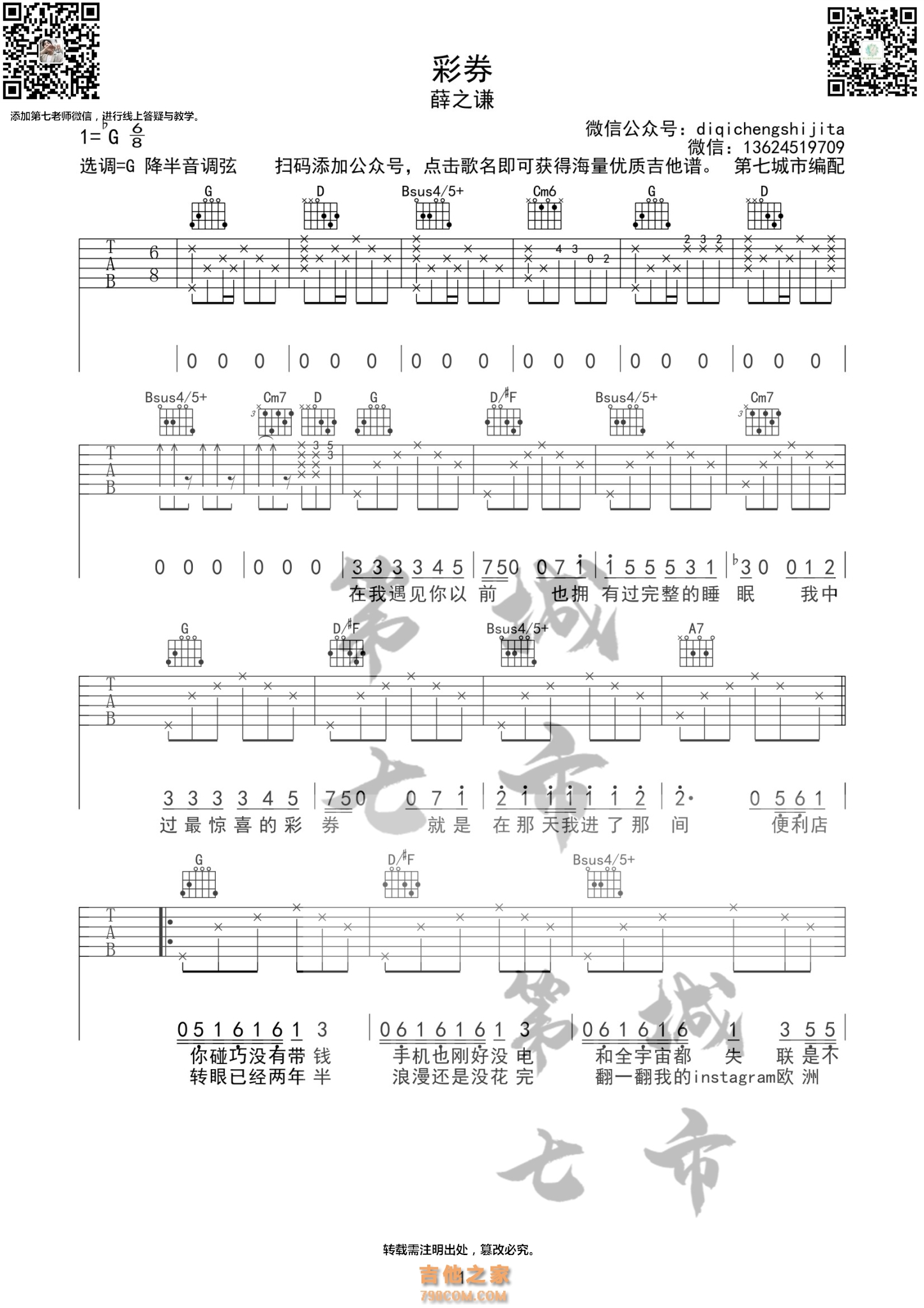《彩券》薛之谦 吉他谱 - 吉他谱