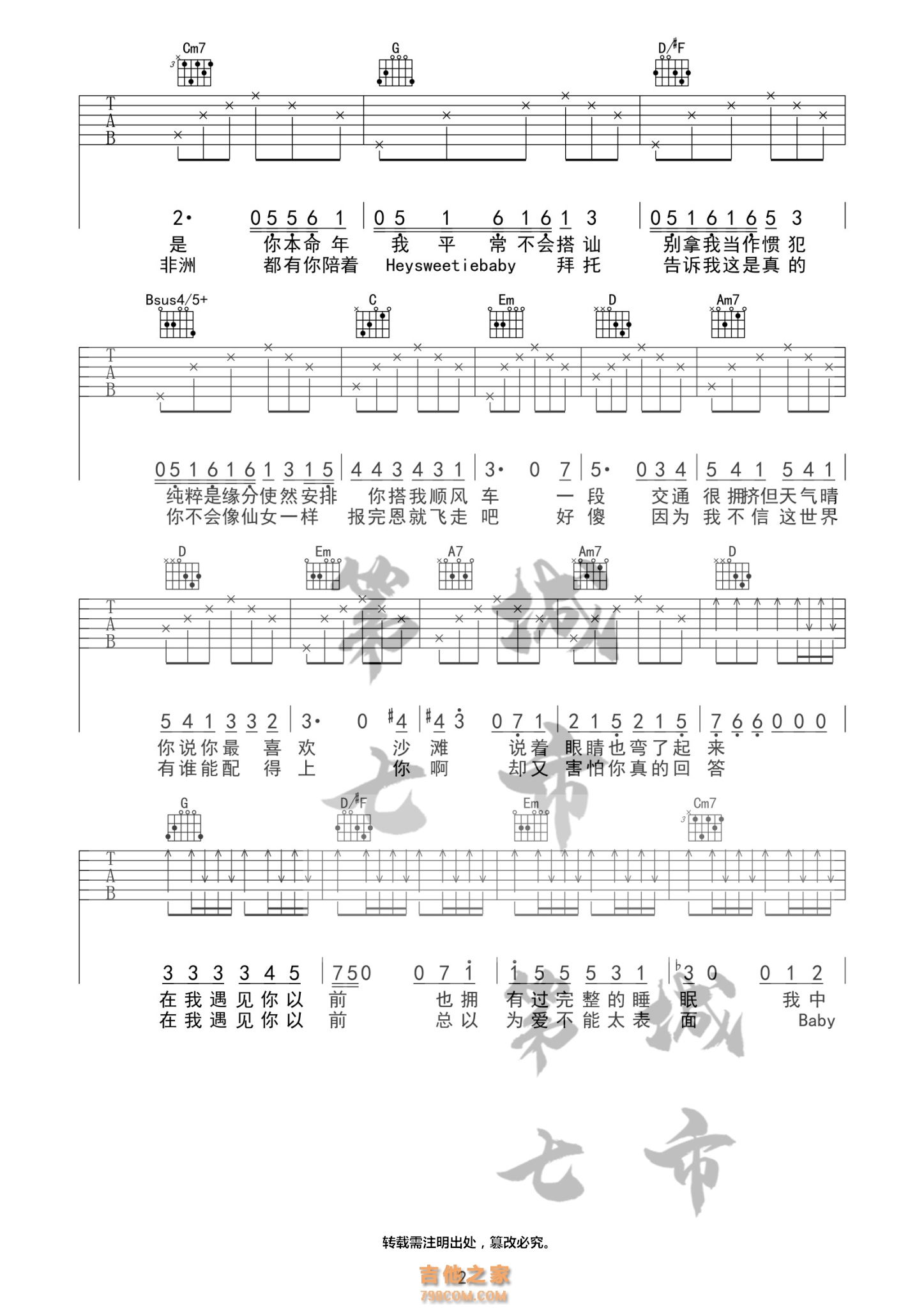为你而来吉他谱_李健_G调扫弦版弹唱六线谱_高…