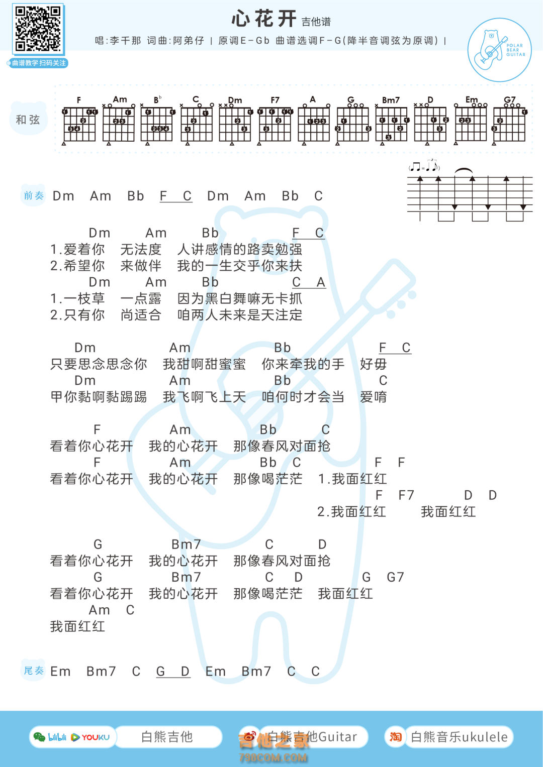 李千那《心花开》吉他谱 白熊音乐 - 吉他谱