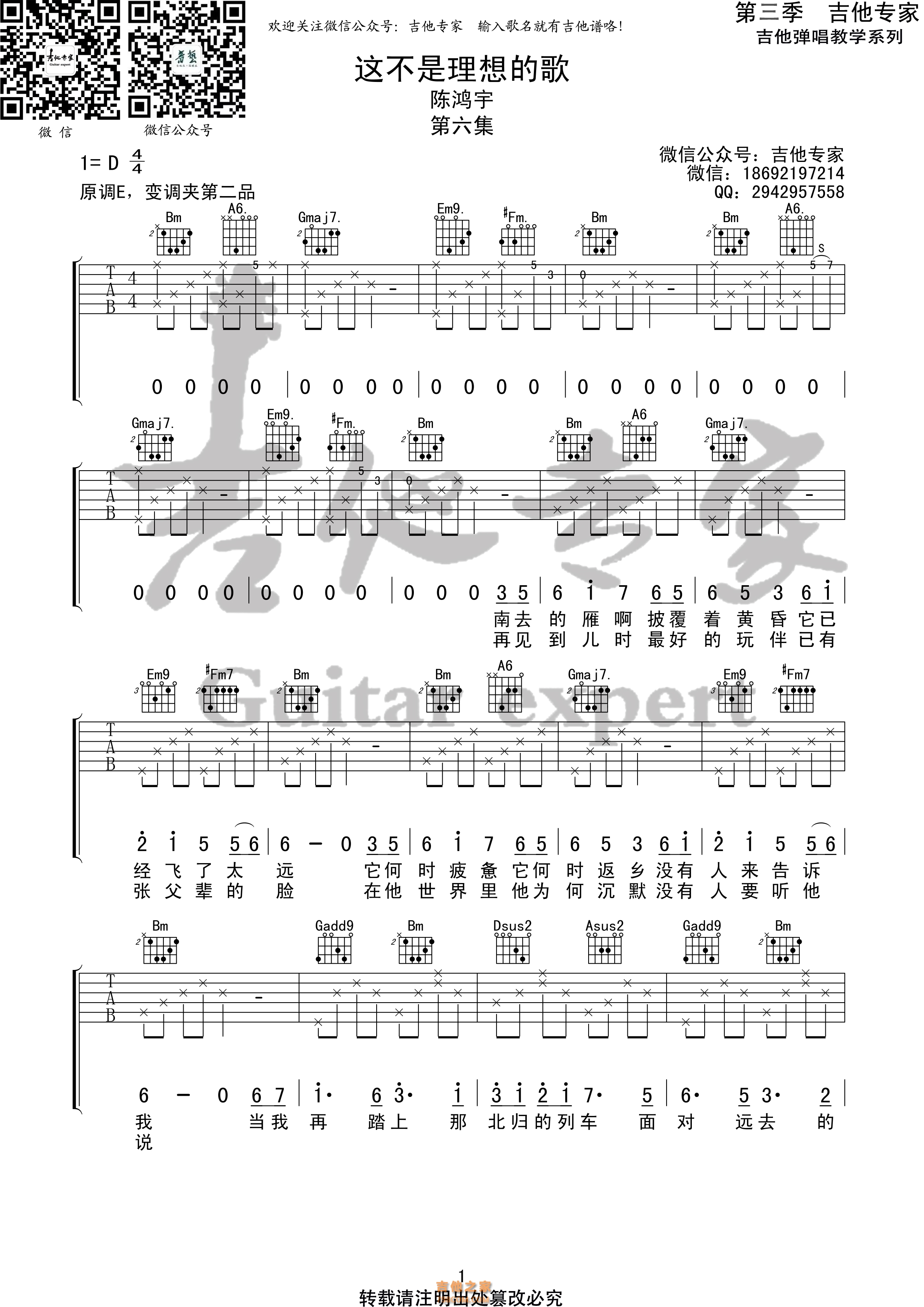 这不是理想的歌 陈鸿宇原版吉他谱 - 吉他谱