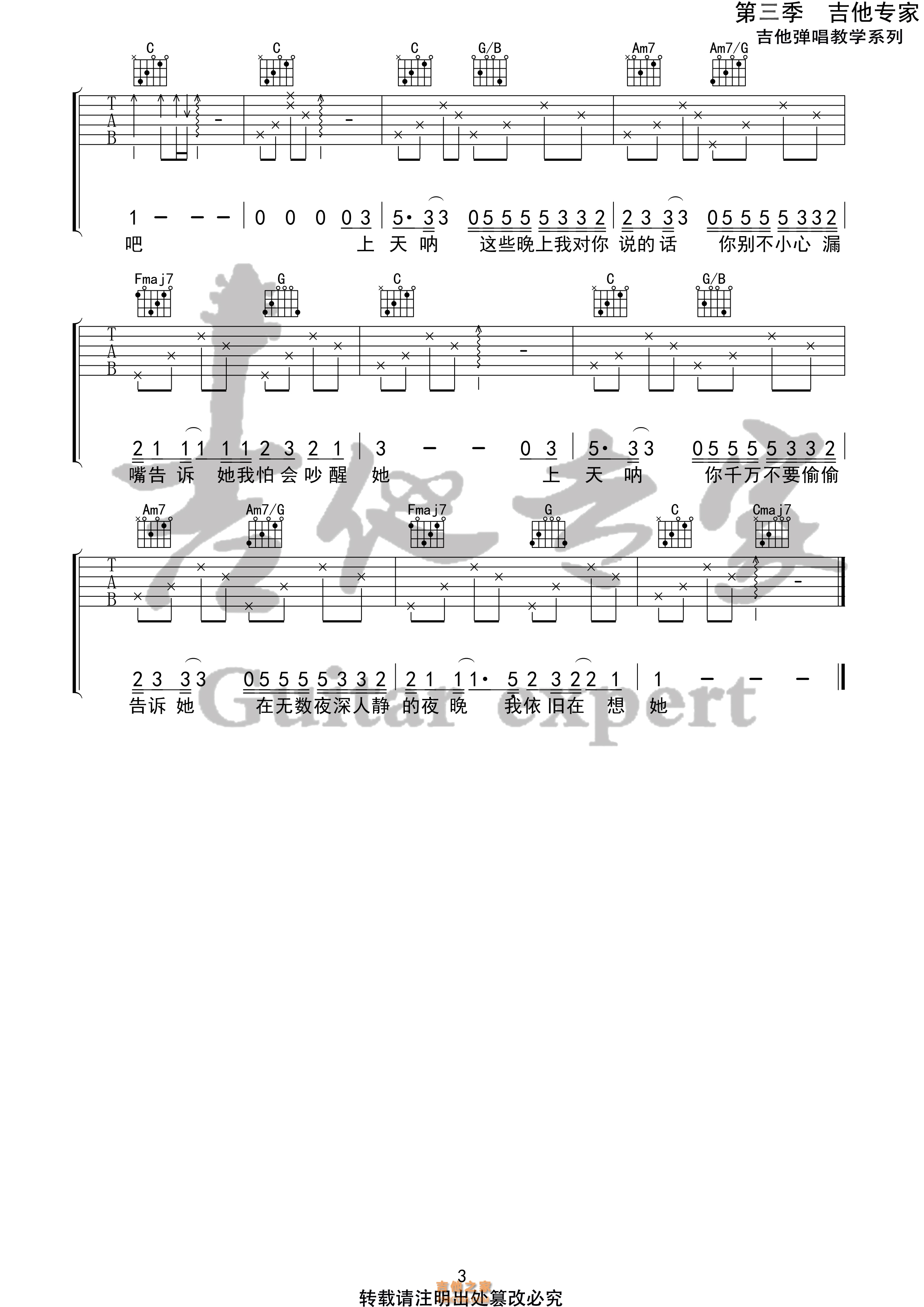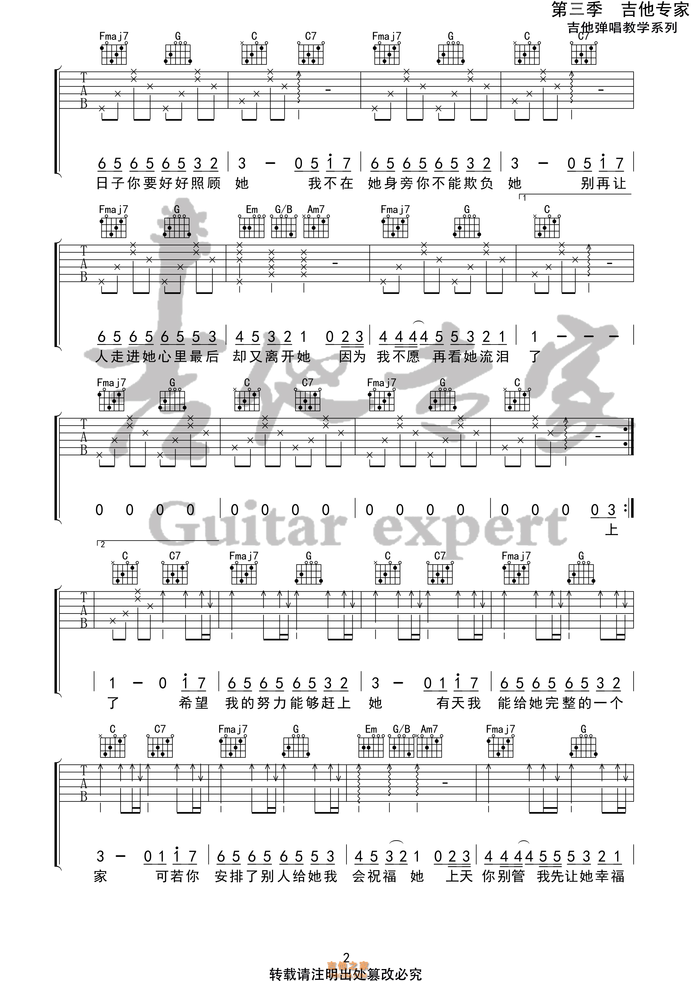 don't cry吉他谱采用了C调指法,由弦心距编配完成。《Don't cry》这首歌曲深受喜爱,在这首歌曲之中枪花乐队一改从前的愤怒激烈,沧桑哀婉低吟出一段令人荡气回肠的柔情曲,而歌曲表达出的无奈和失意让人动容。这首歌曲有很多个亮点,不止在歌收尾的地方,在歌起时就… -