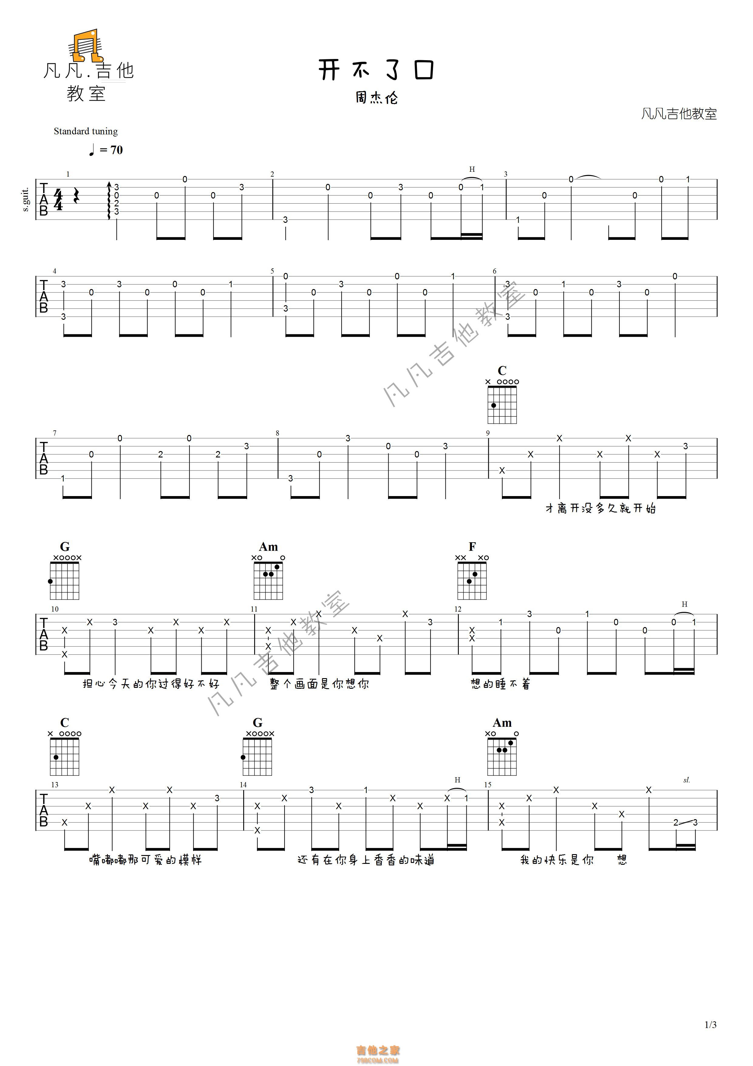 「开不了口」周杰伦,吉他弹唱-「吉他谱」免费 - 吉他谱