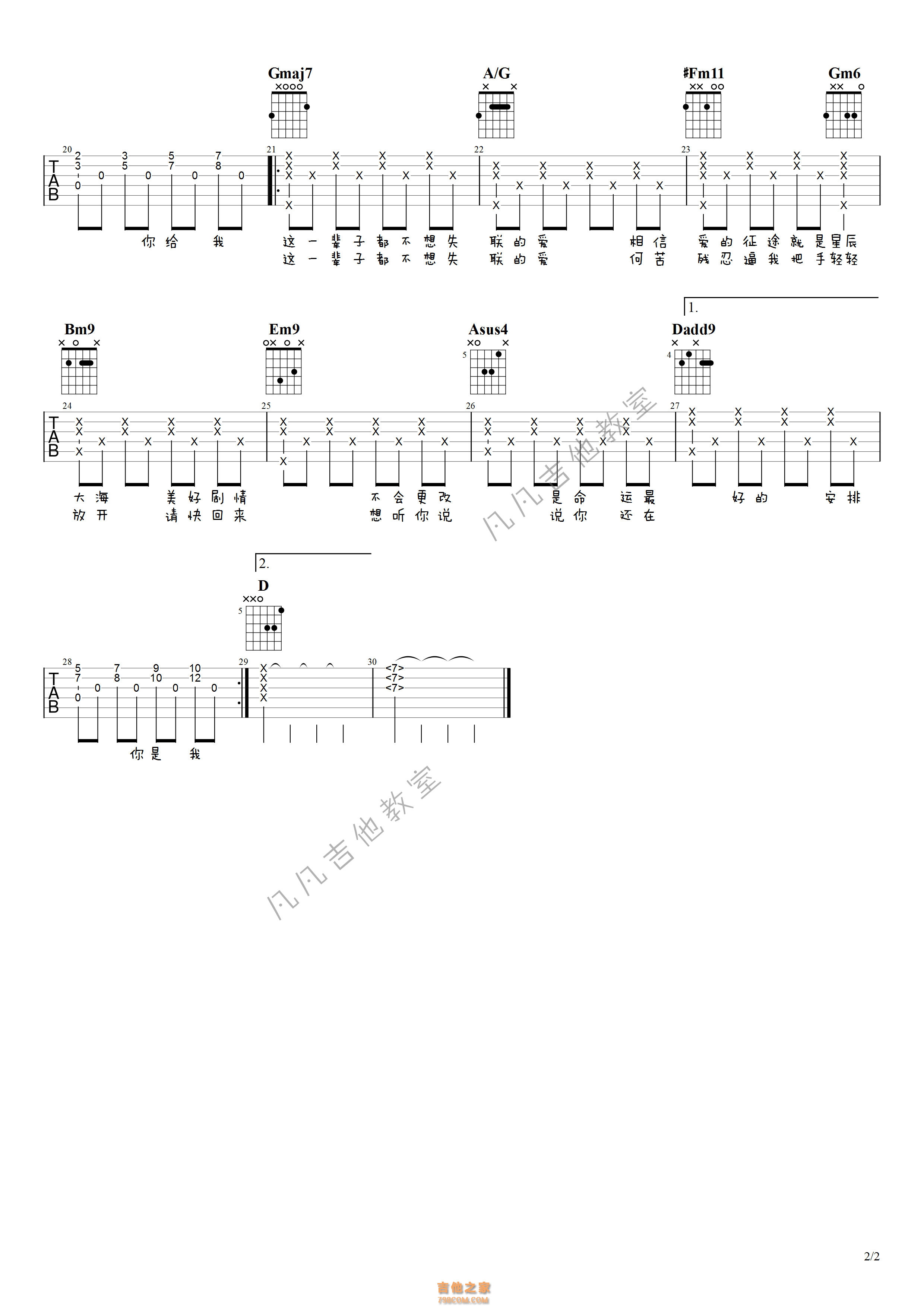 街角的晚风吉他谱,歌曲原调为降B调,此版本的曲谱来源于@网络转载,为4/4拍的节奏,按G调指法编配,共2张高清吉他谱,变调夹3品为原歌曲的调式,演唱时可按个人音域选择合适的变调夹位置。 歌曲表达了对逝去爱情的不舍与矛盾,想靠近回忆又怕受伤,藏着爱而不得的… -