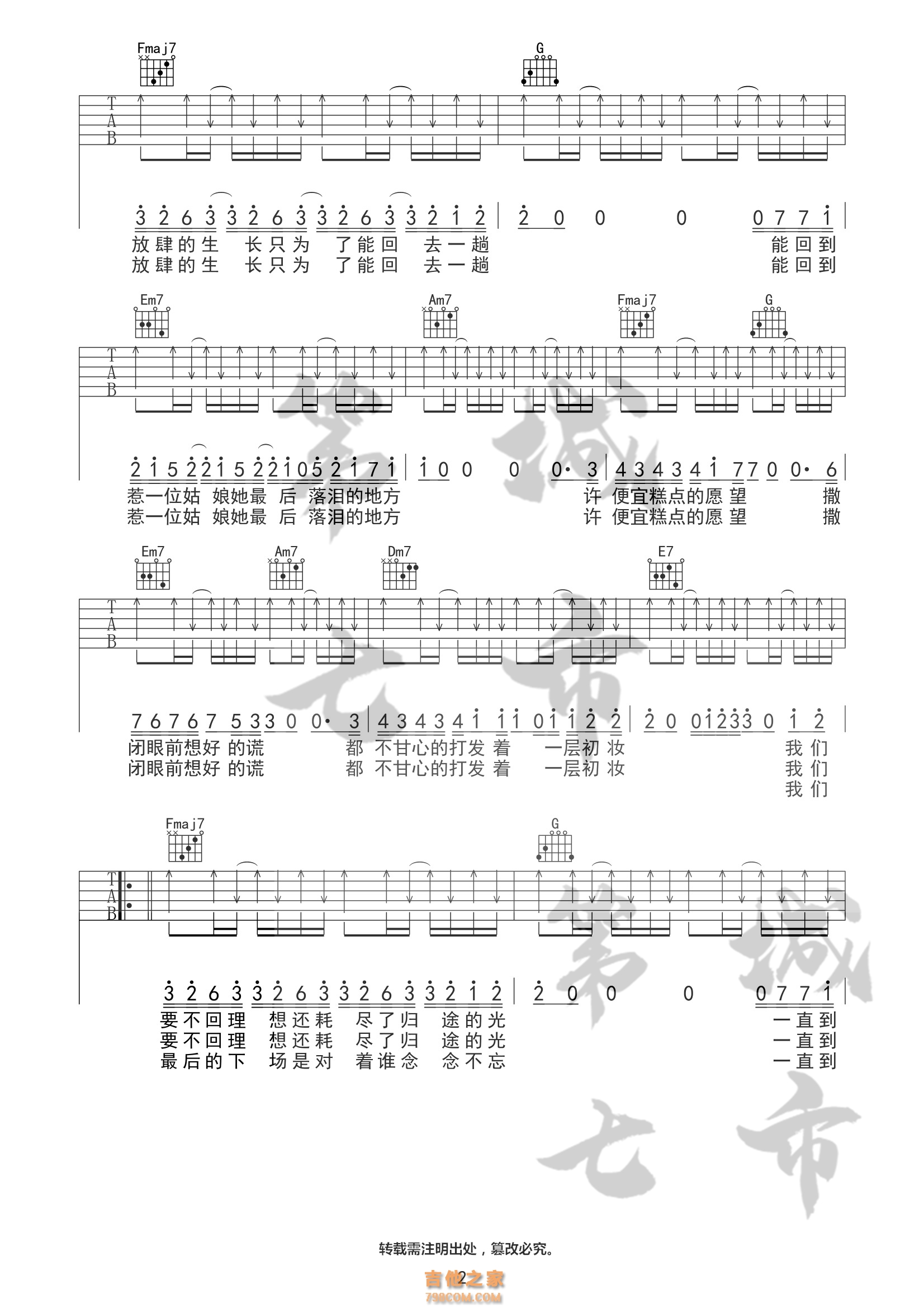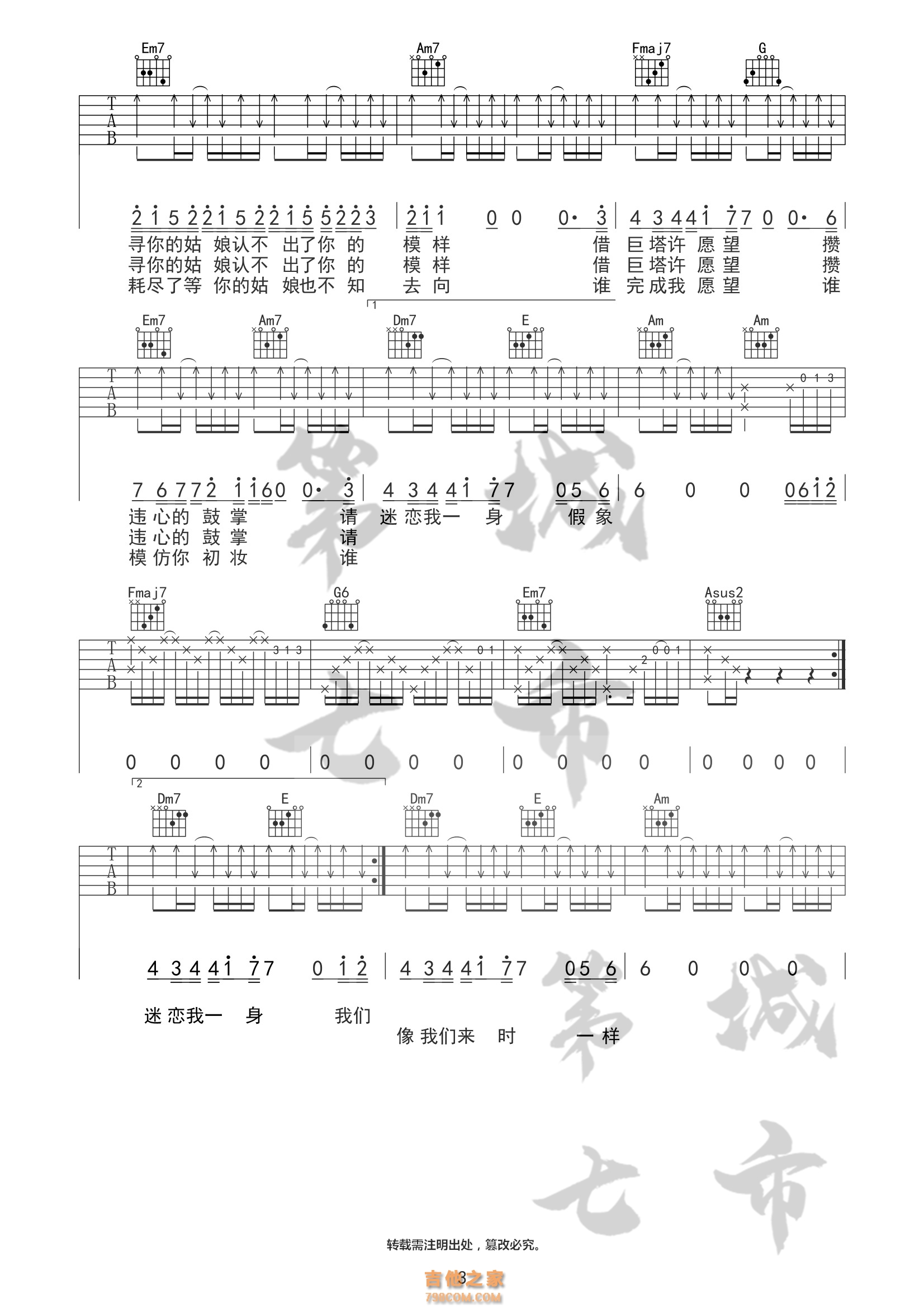 为你而来吉他谱_李健_G调扫弦版弹唱六线谱_高…