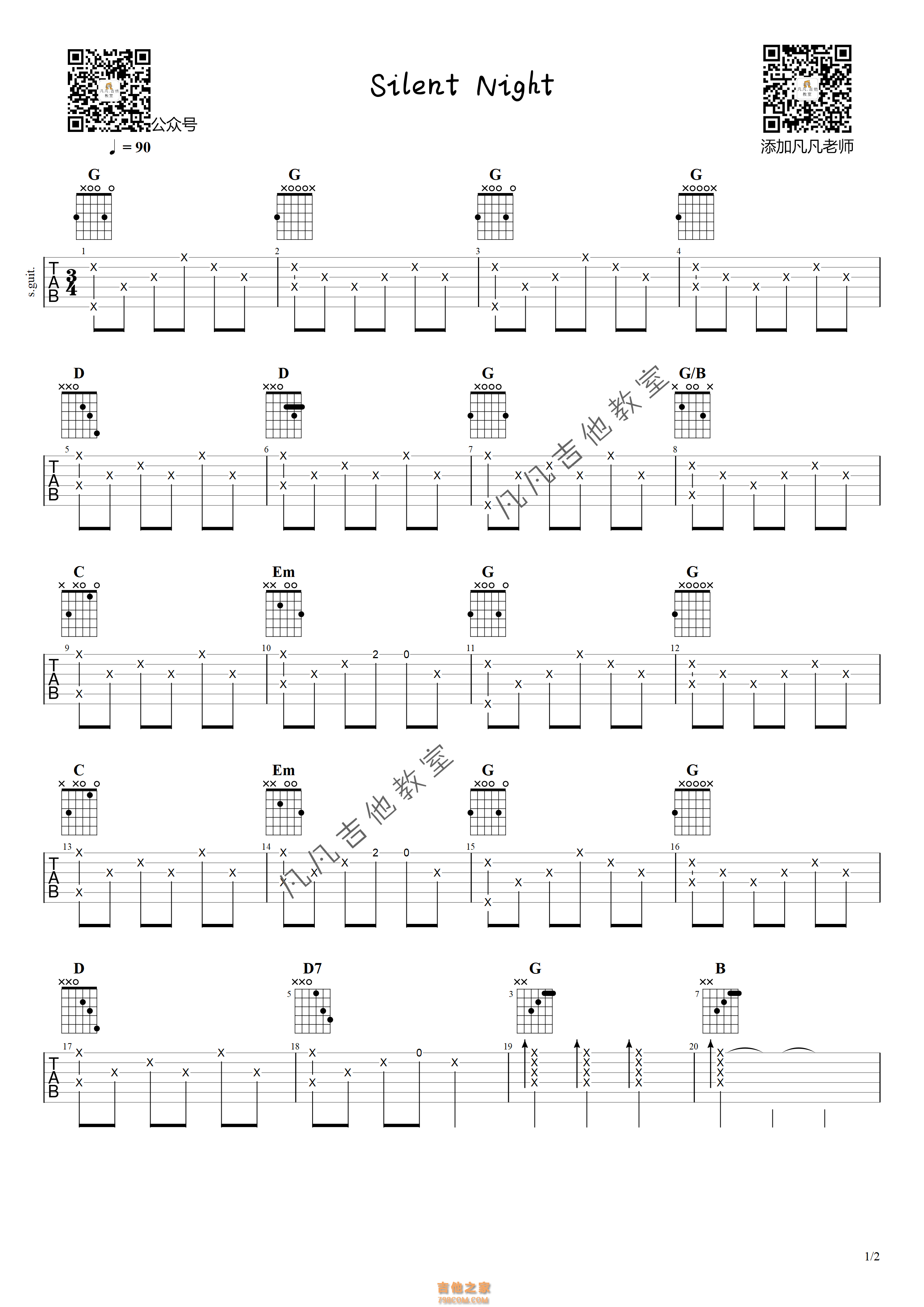 「平安夜」指弹吉他、独奏,简单好听版,送吉他谱,圣诞节快乐!silent night ... - 吉他谱