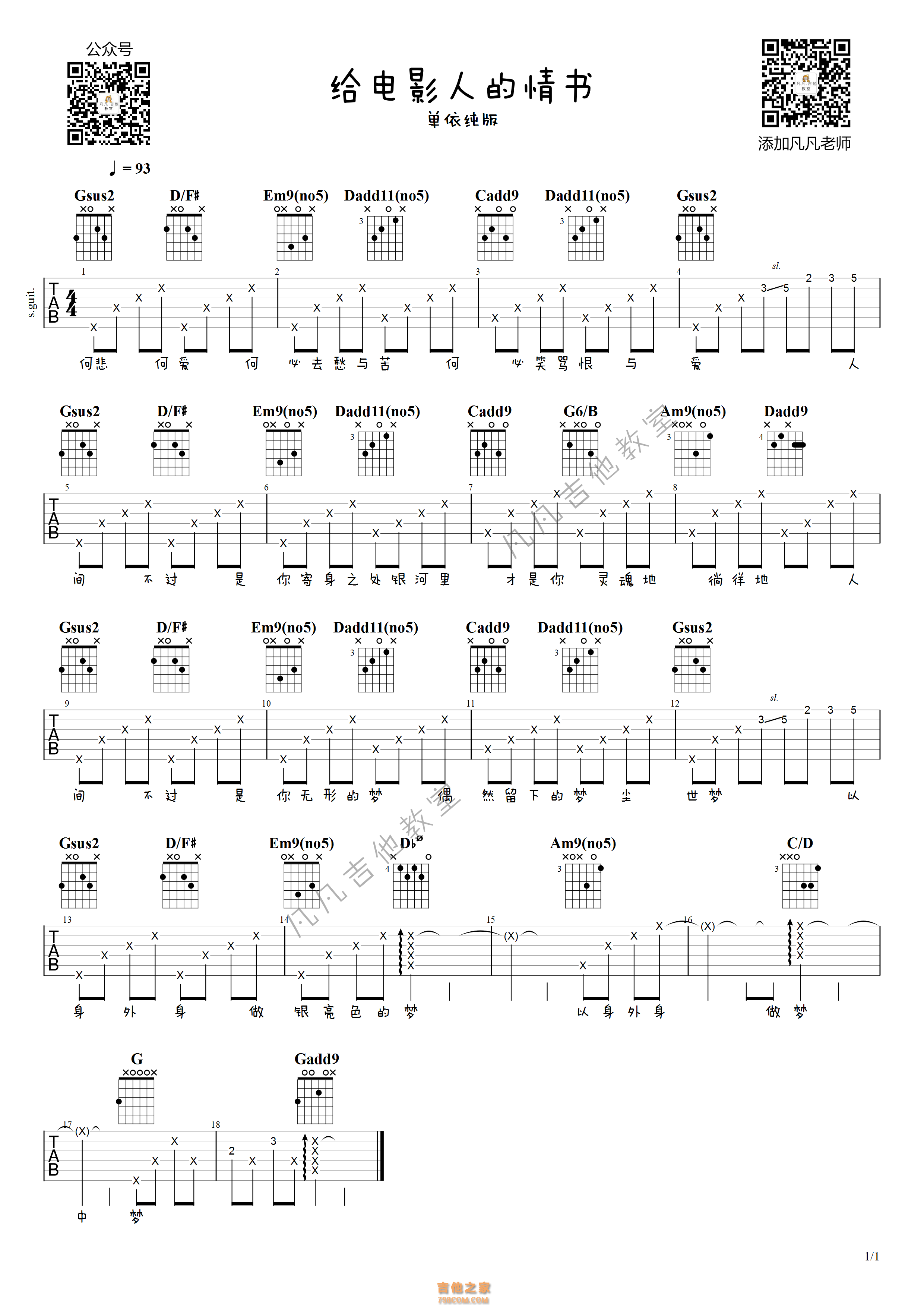 吉他弹唱「给电影人的情书」单依纯版、中国好声音2020冠军,李宗盛曲,蔡琴原唱,张艺 ... - 吉他谱
