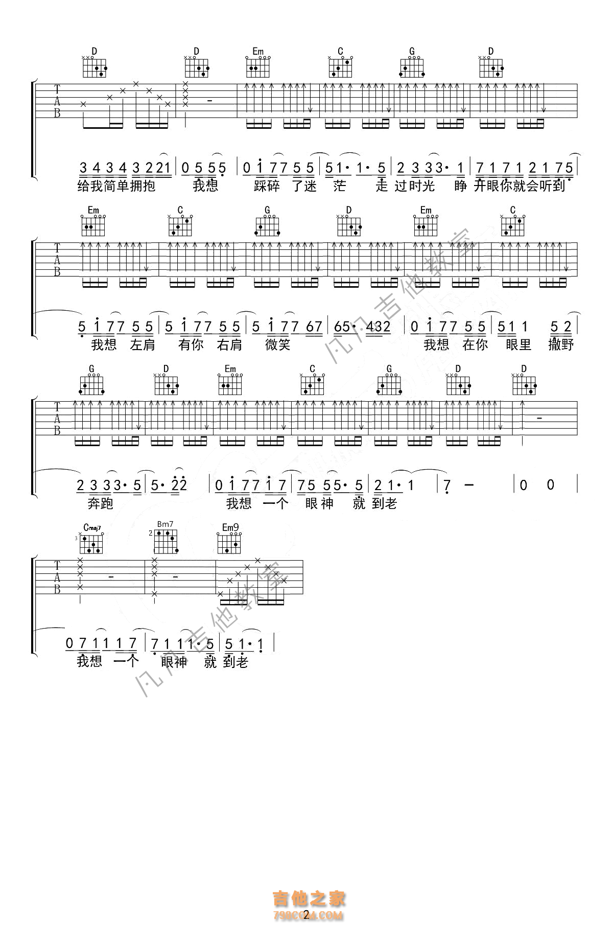 为你而来吉他谱_李健_G调扫弦版弹唱六线谱_高…