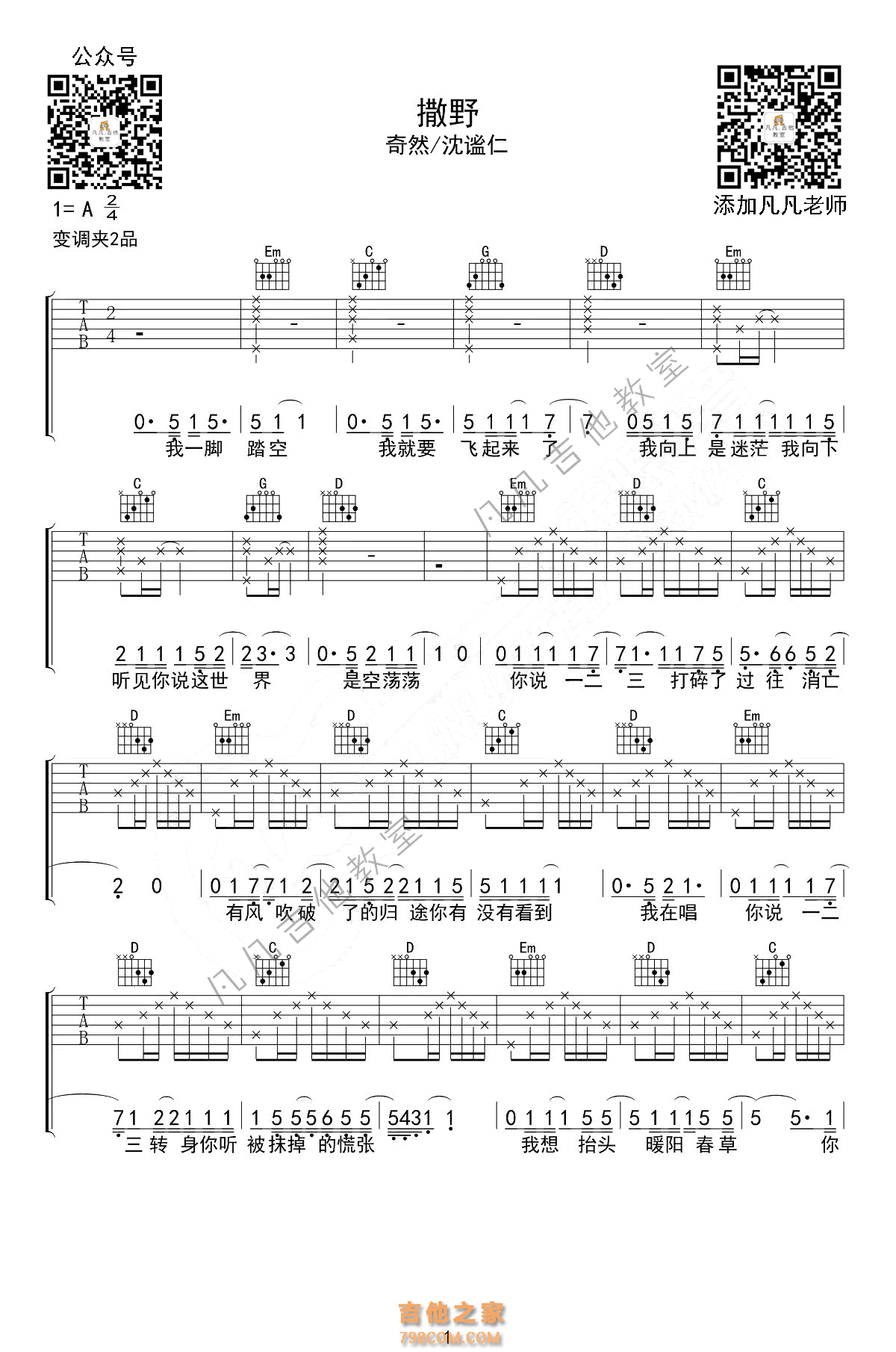 「撒野」欸-61,吉他弹唱,奇然、沈谧仁,简单版、免费吉他谱、原耽 ... - 吉他谱