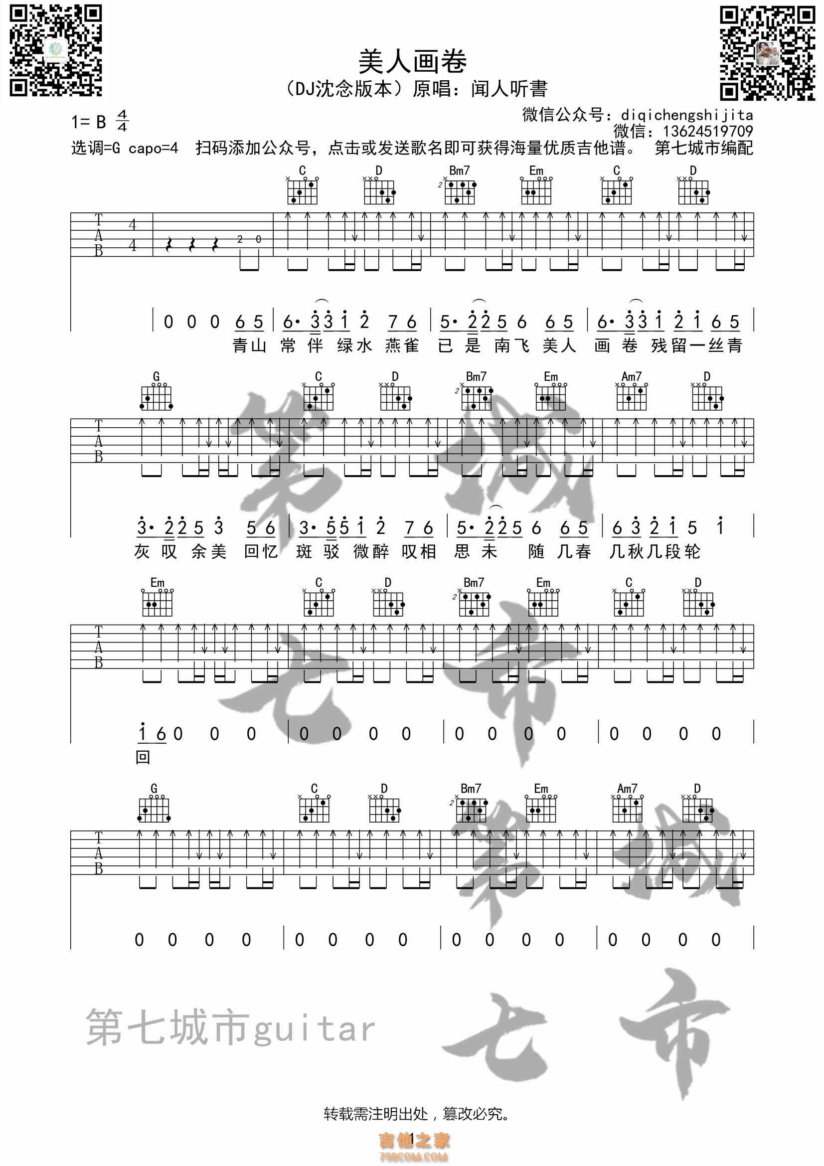 美人画卷 吉他谱 第七城市编配 - 吉他谱