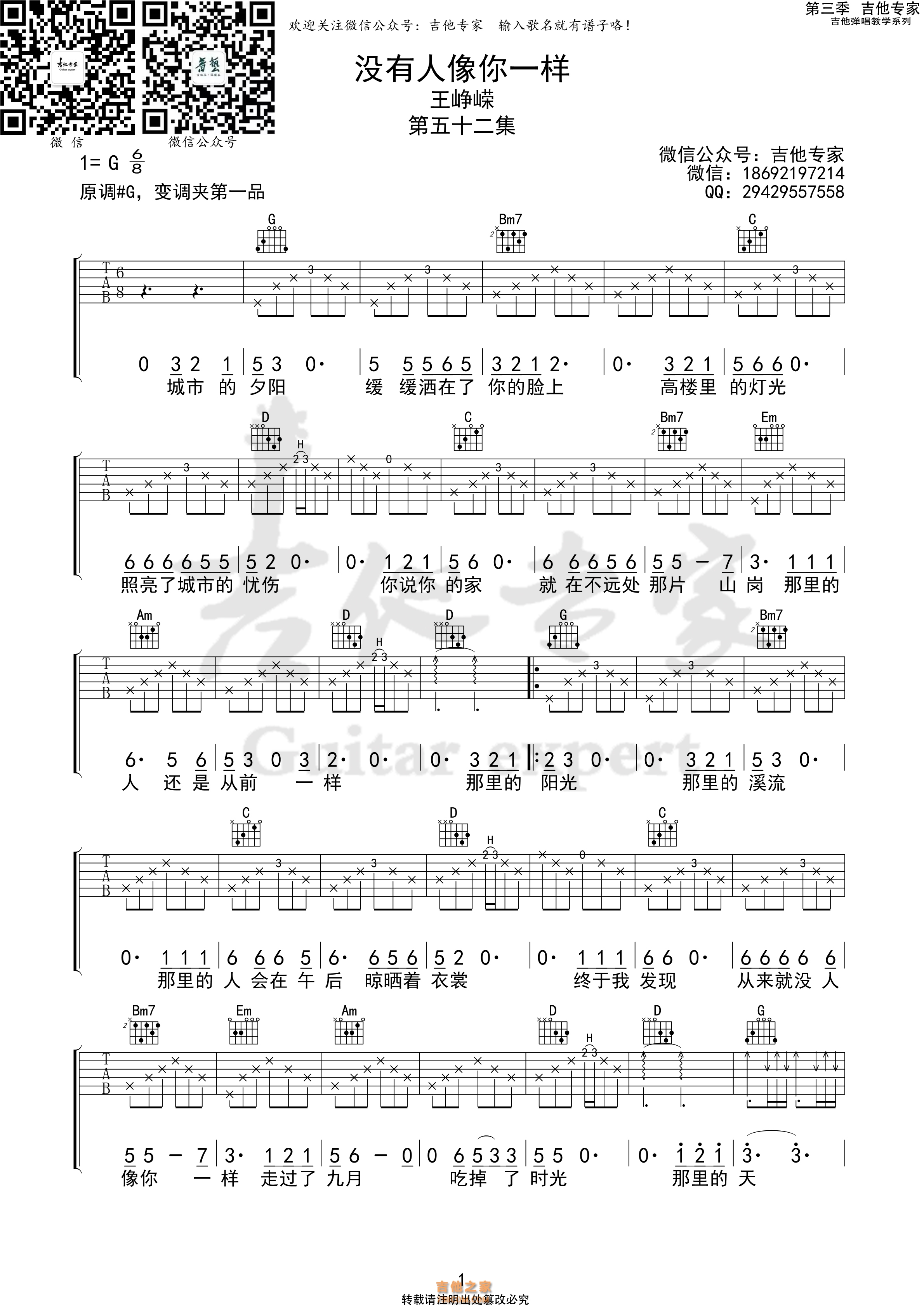 为你而来吉他谱_李健_G调扫弦版弹唱六线谱_高…