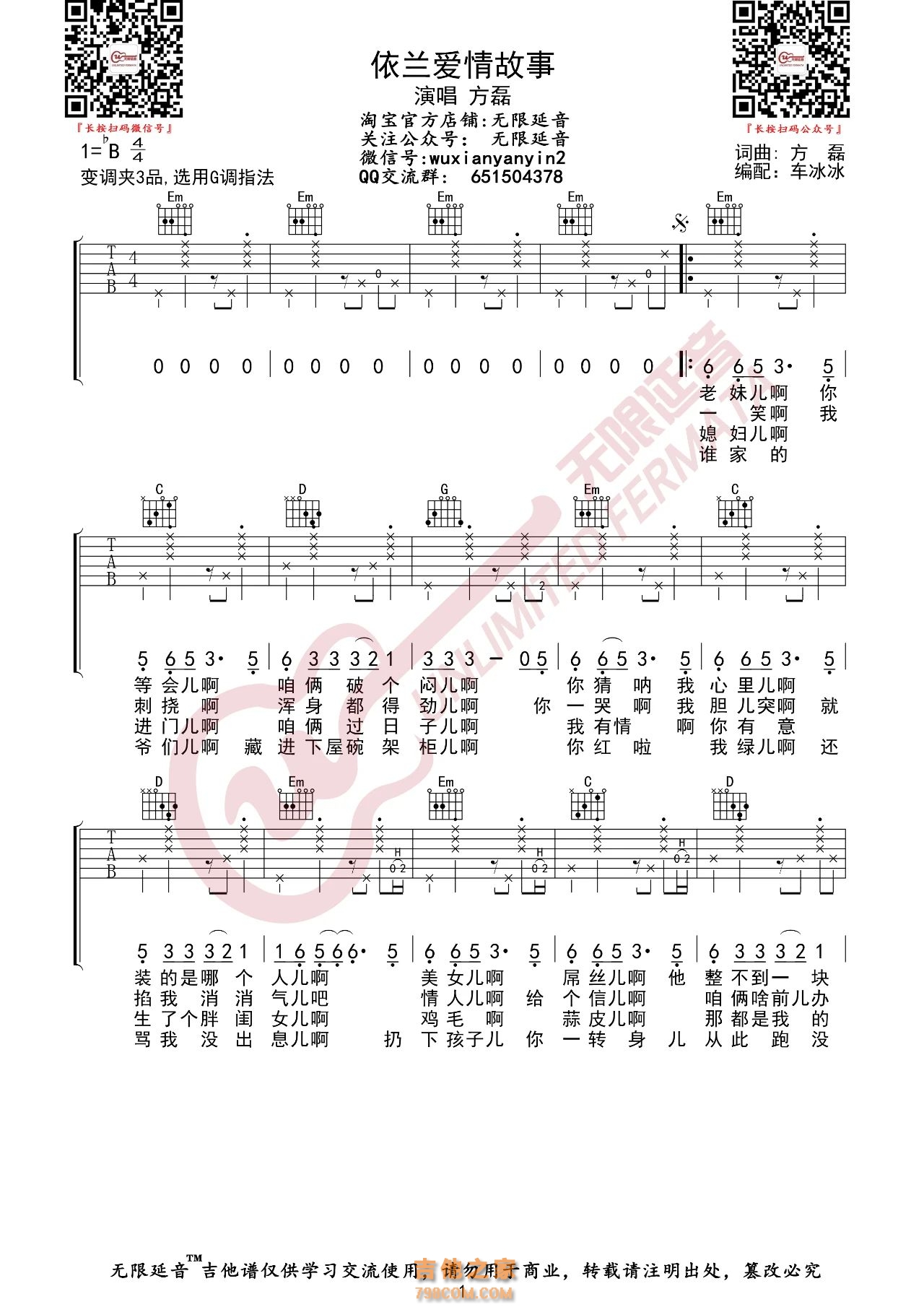 方磊 依兰爱情故事 吉他谱