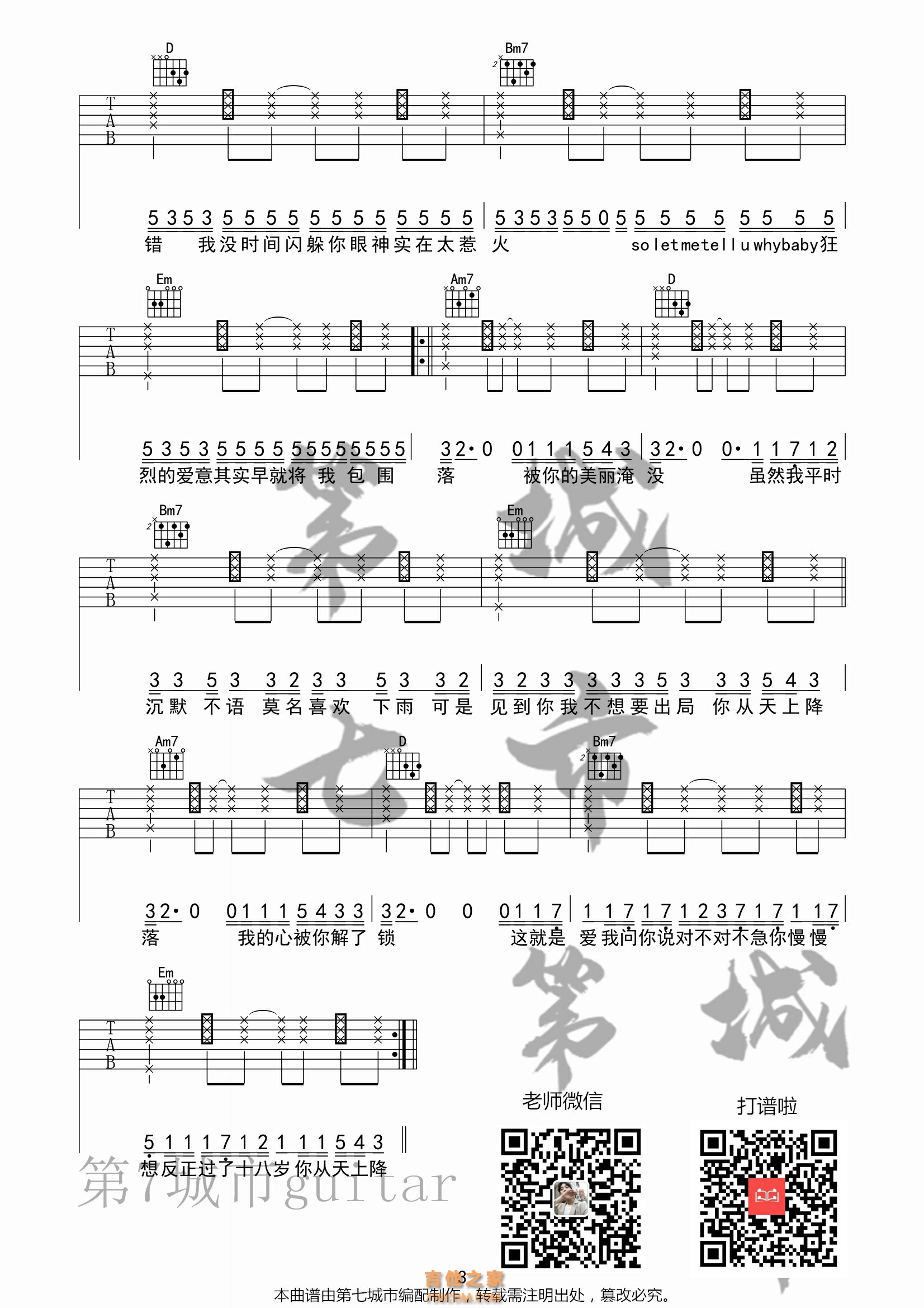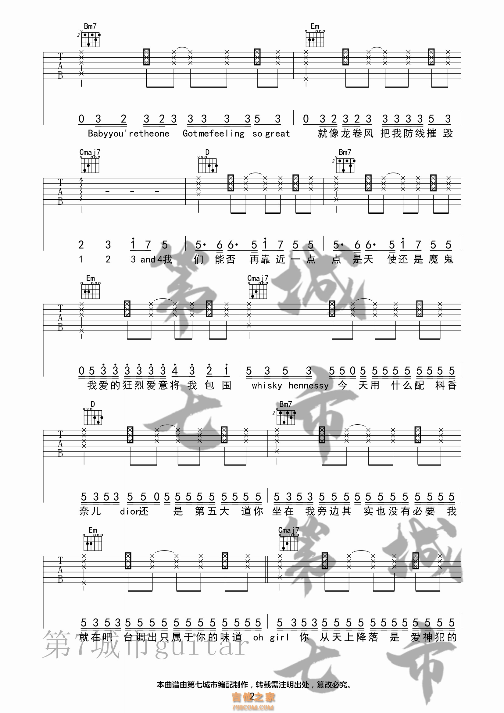 本曲谱由第七城市编配制作,曲谱选用G调和弦,变调夹2