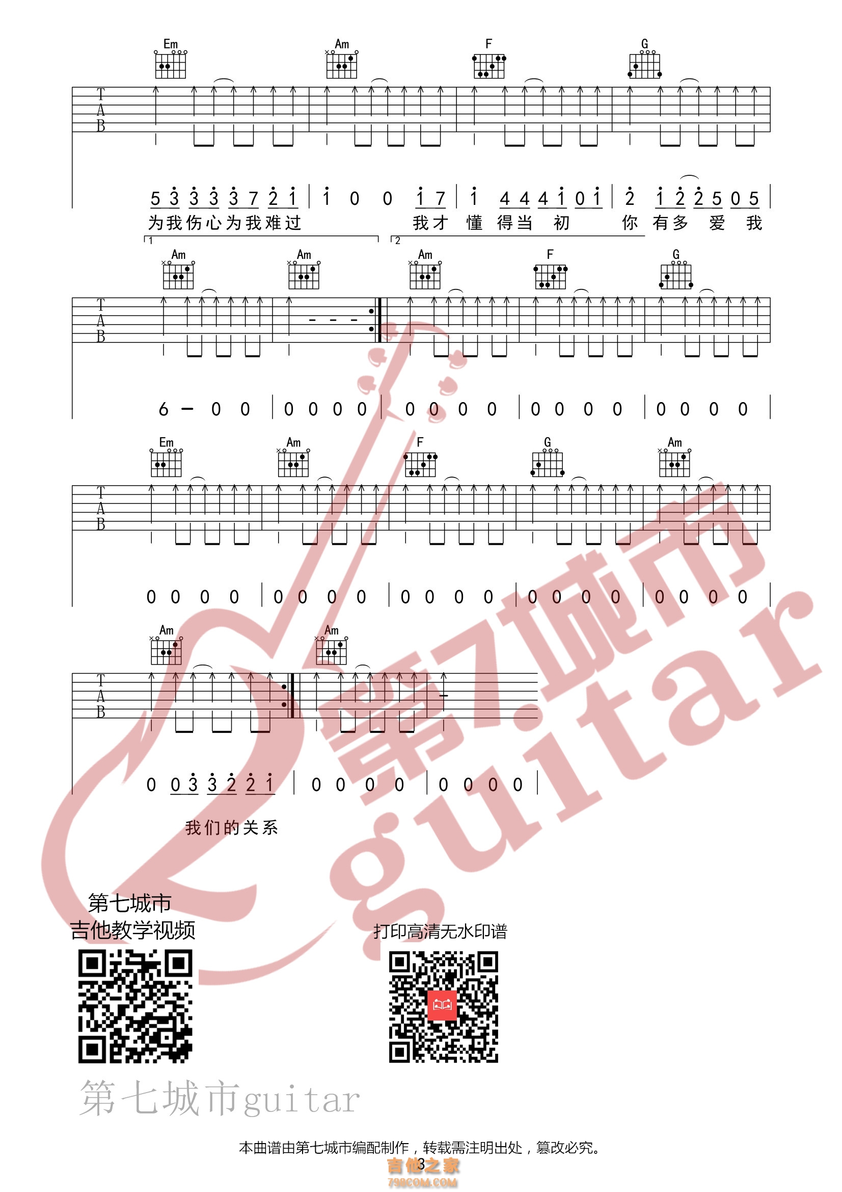 爱不得忘不舍 吉他谱 白小白 第七城市编配 - 吉他谱