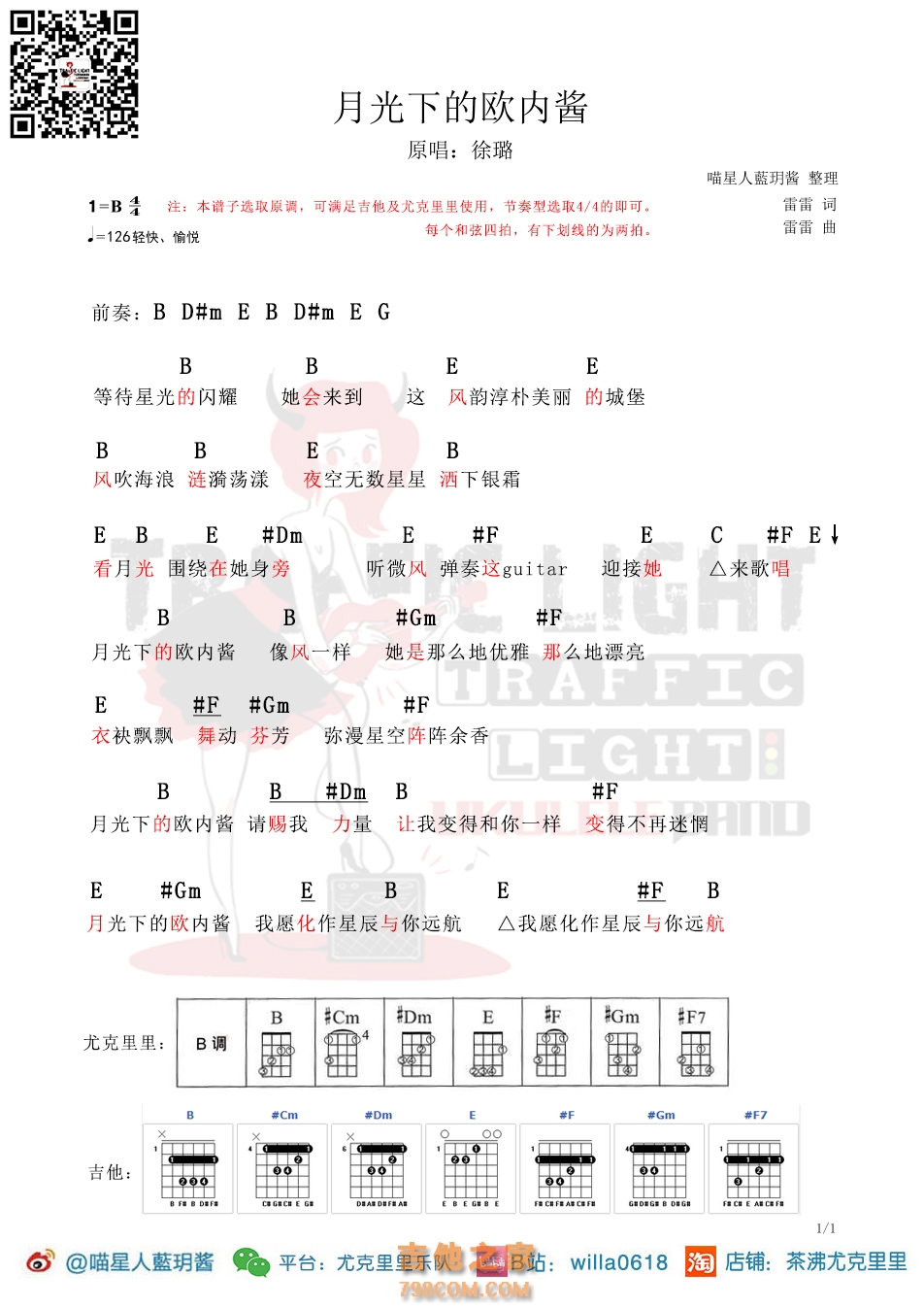 茶沸尤克里里曲谱《月光下的欧内酱》-徐璐 - 尤克里里谱