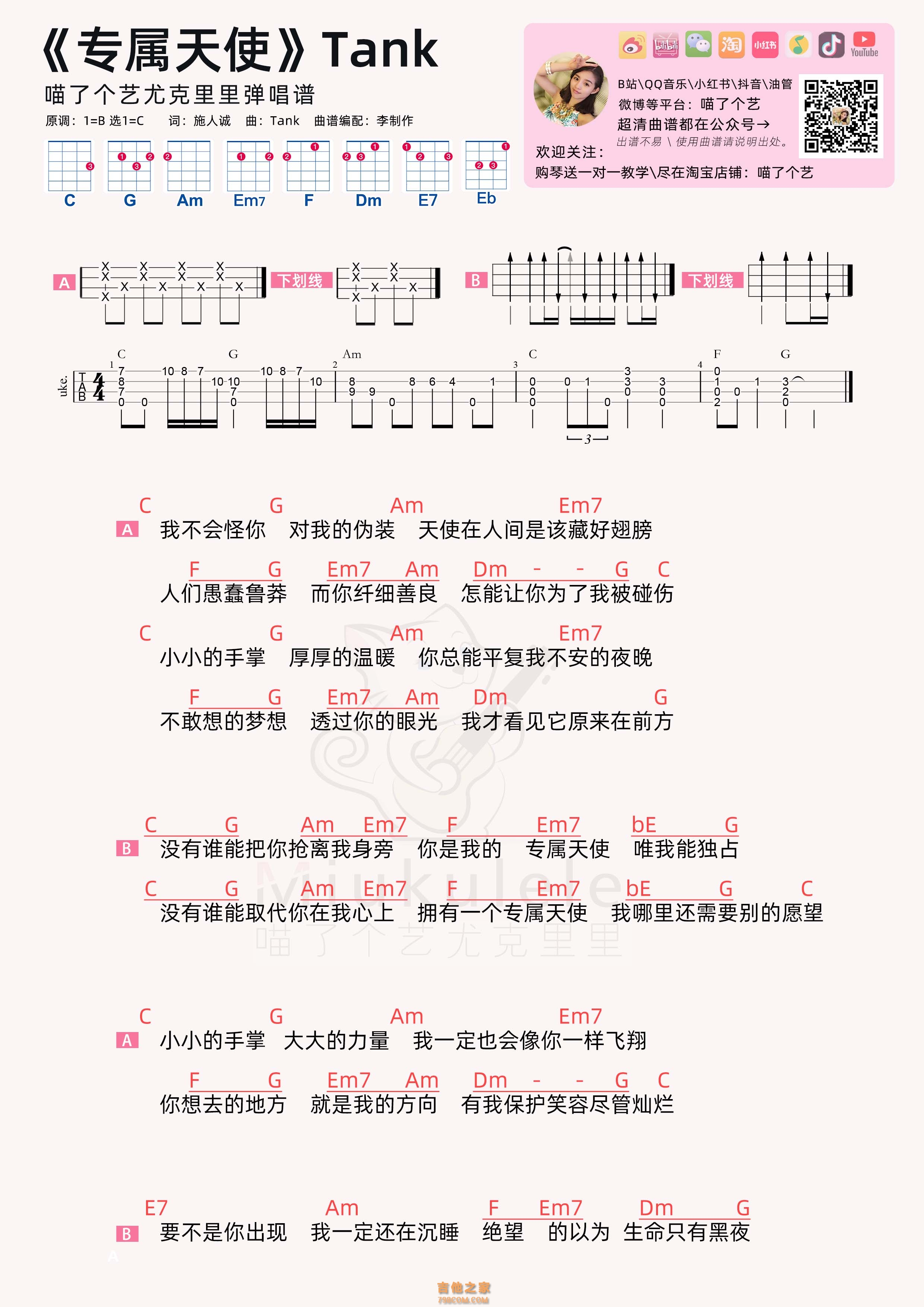 TANK《专属天使》尤克里里弹唱翻唱 喵了个艺 - 尤克里里谱