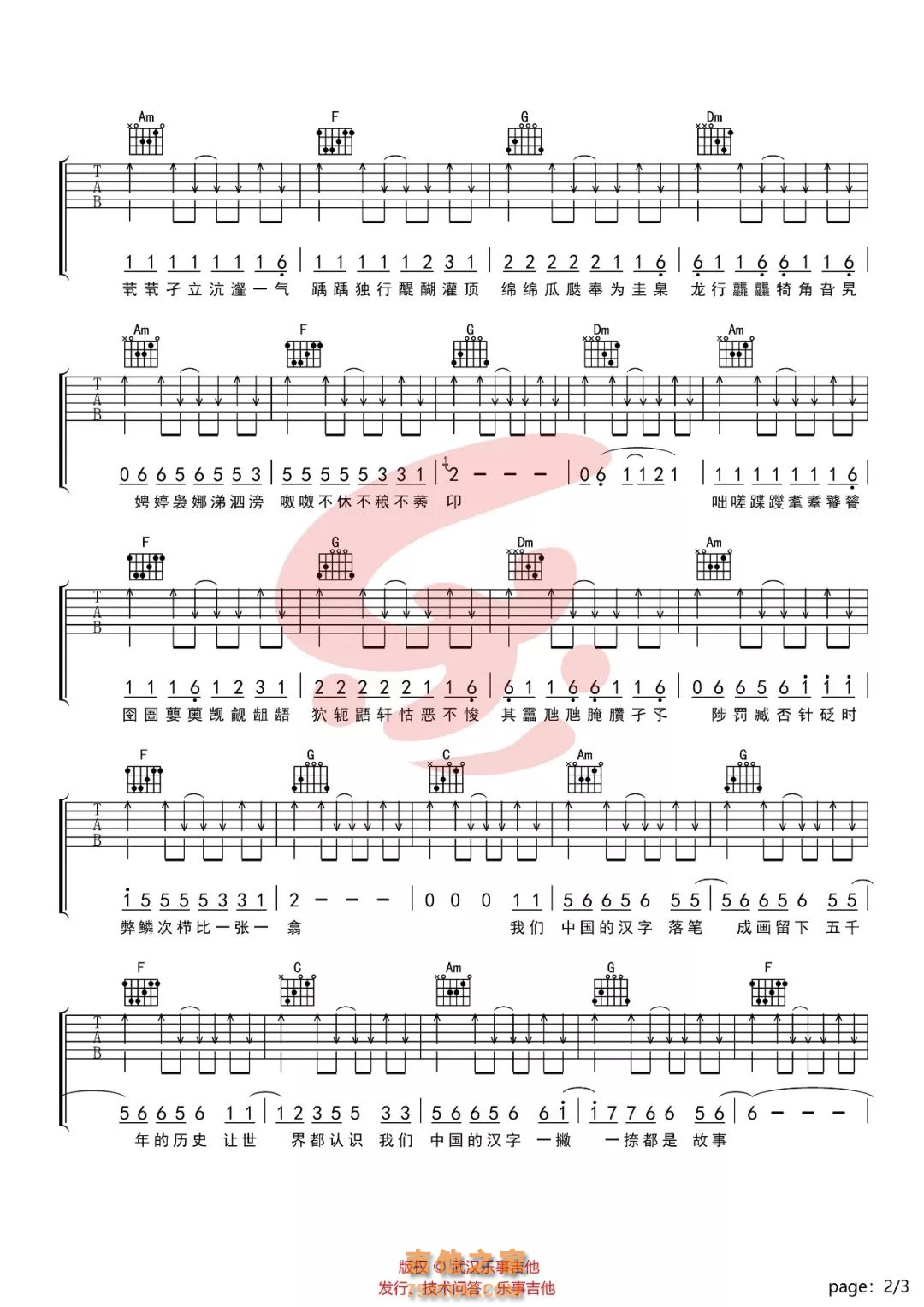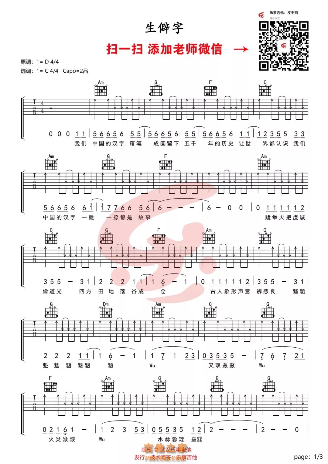 【生僻字吉他谱·抖音热歌】《生僻字》六线谱 乐事吉他版 - 抖音吉他谱