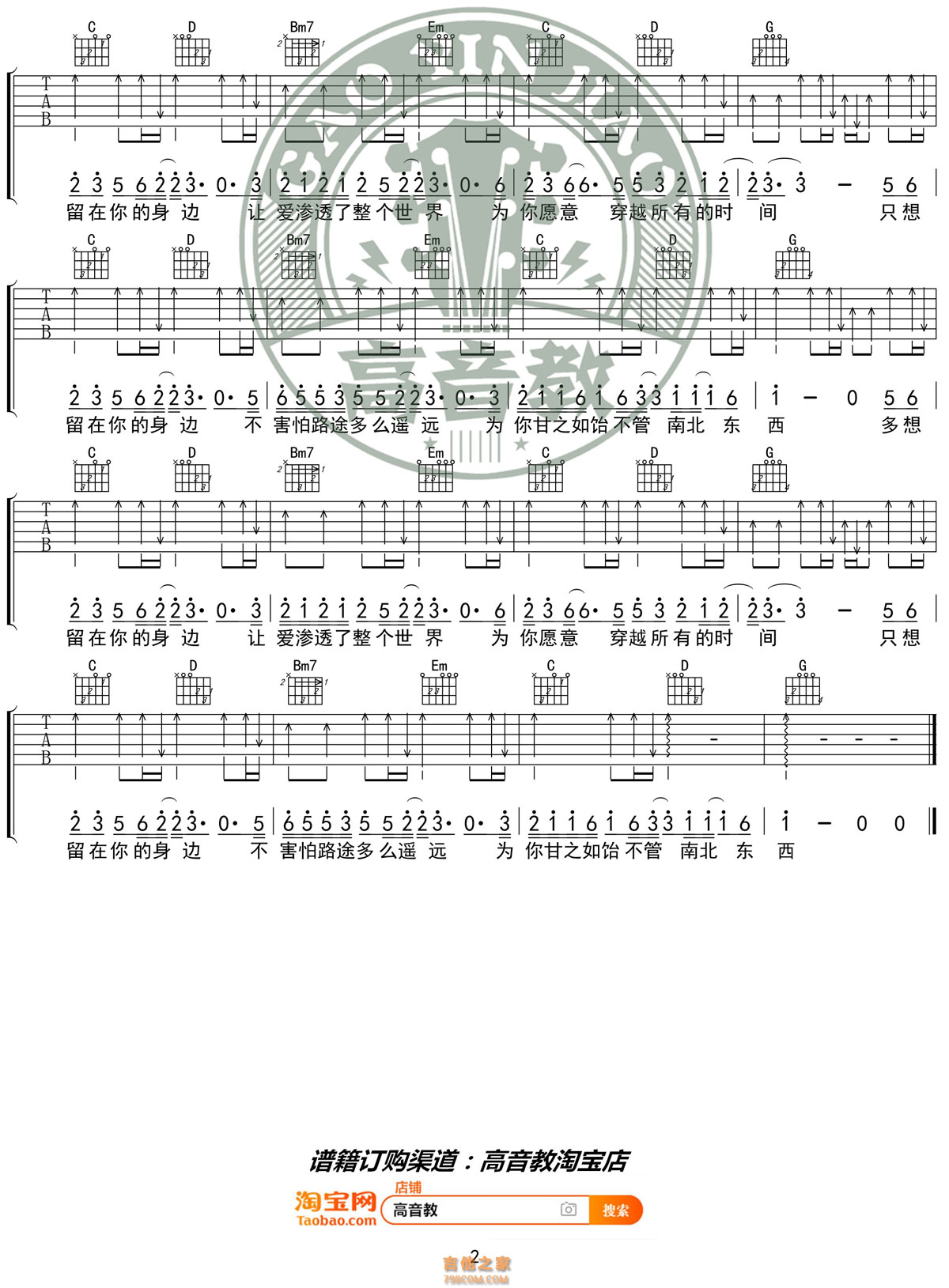 为你而来吉他谱_李健_G调扫弦版弹唱六线谱_高…