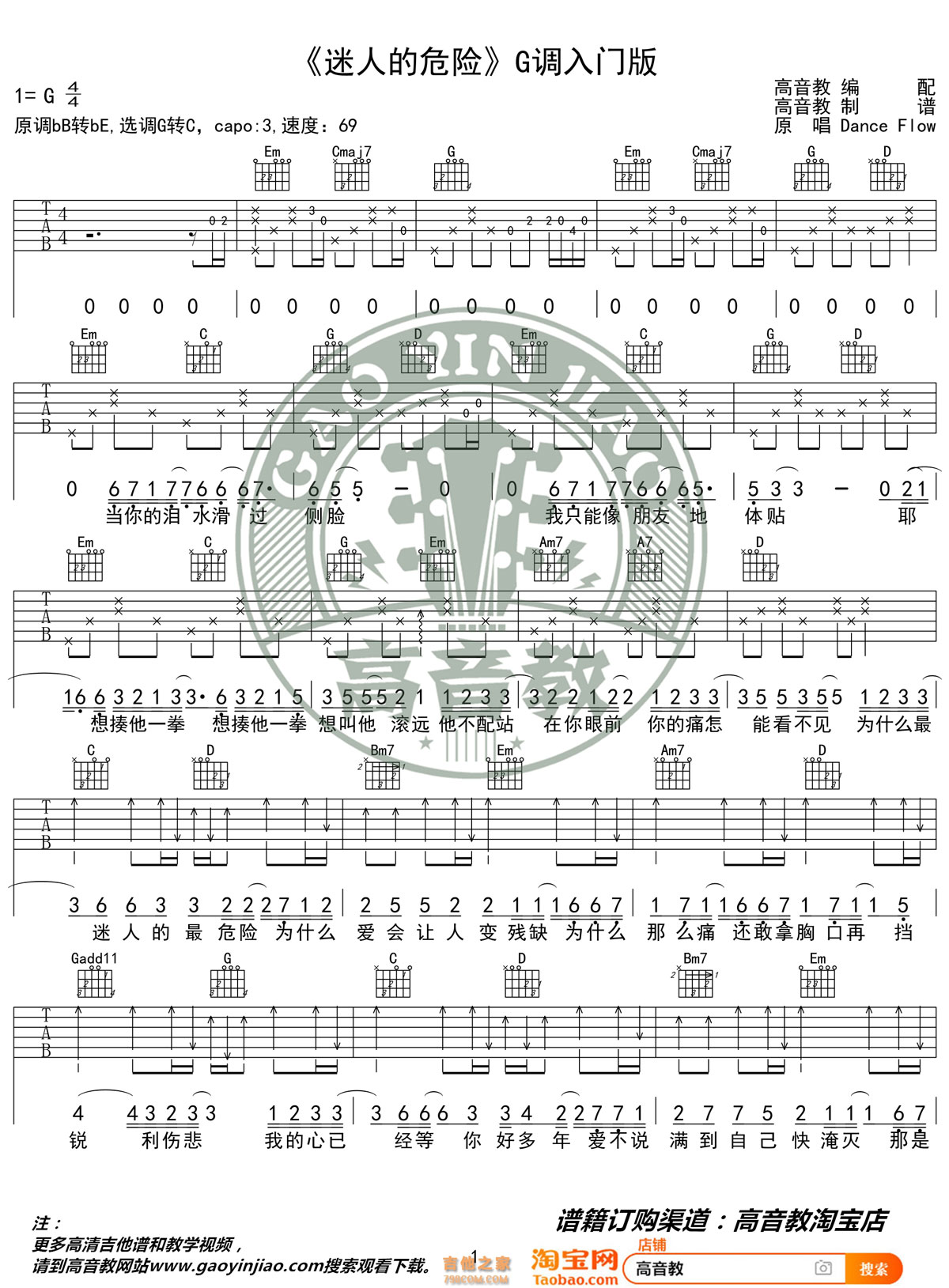 抖音《迷人的危险》吉他谱G调入门版 高音教编配 猴哥吉他教学 ... - 抖音吉他谱