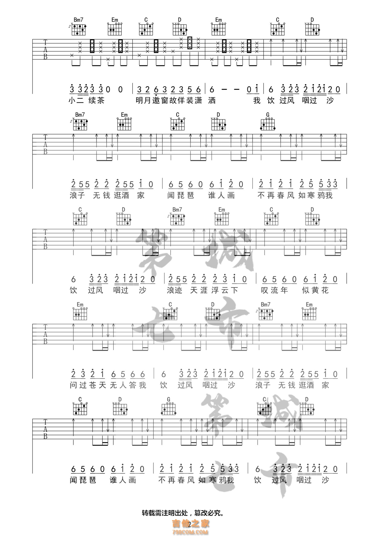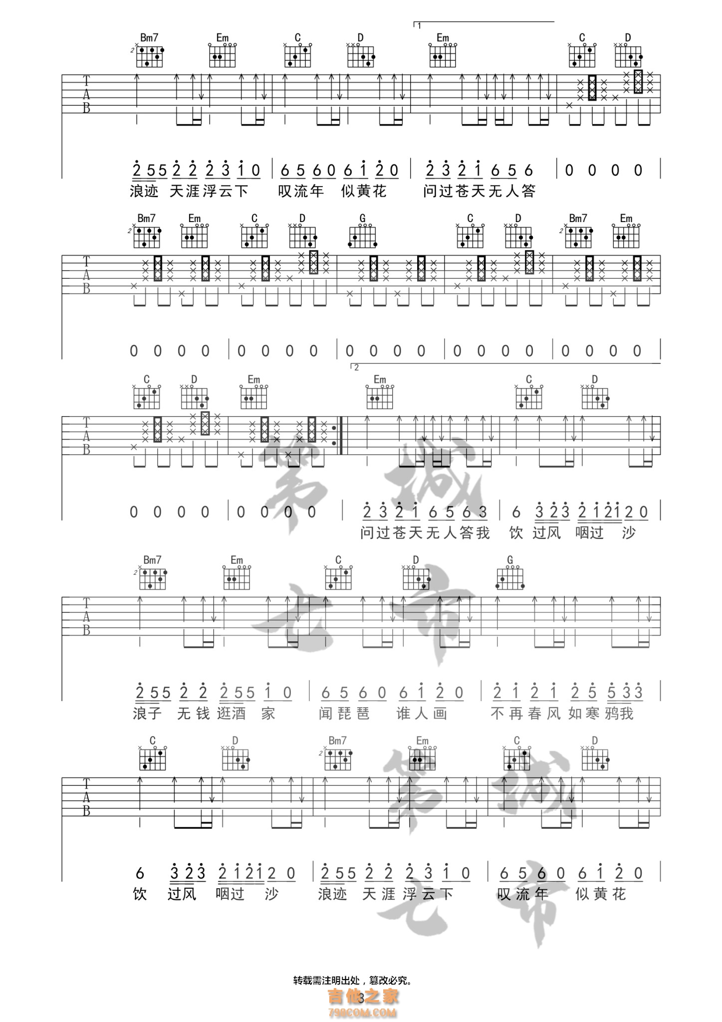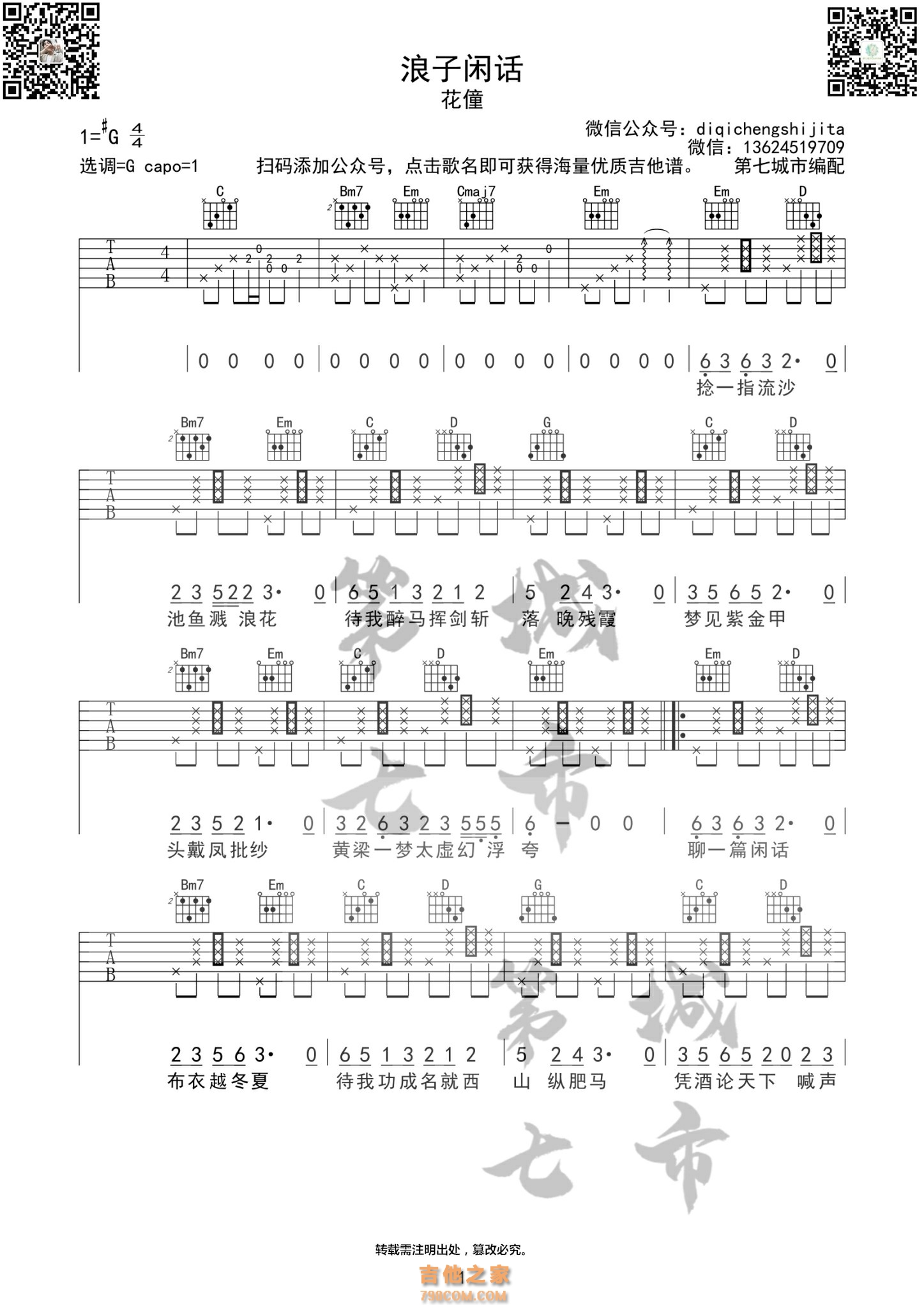 [抖音热歌]浪子闲话 花僮 吉他谱 - 抖音吉他谱