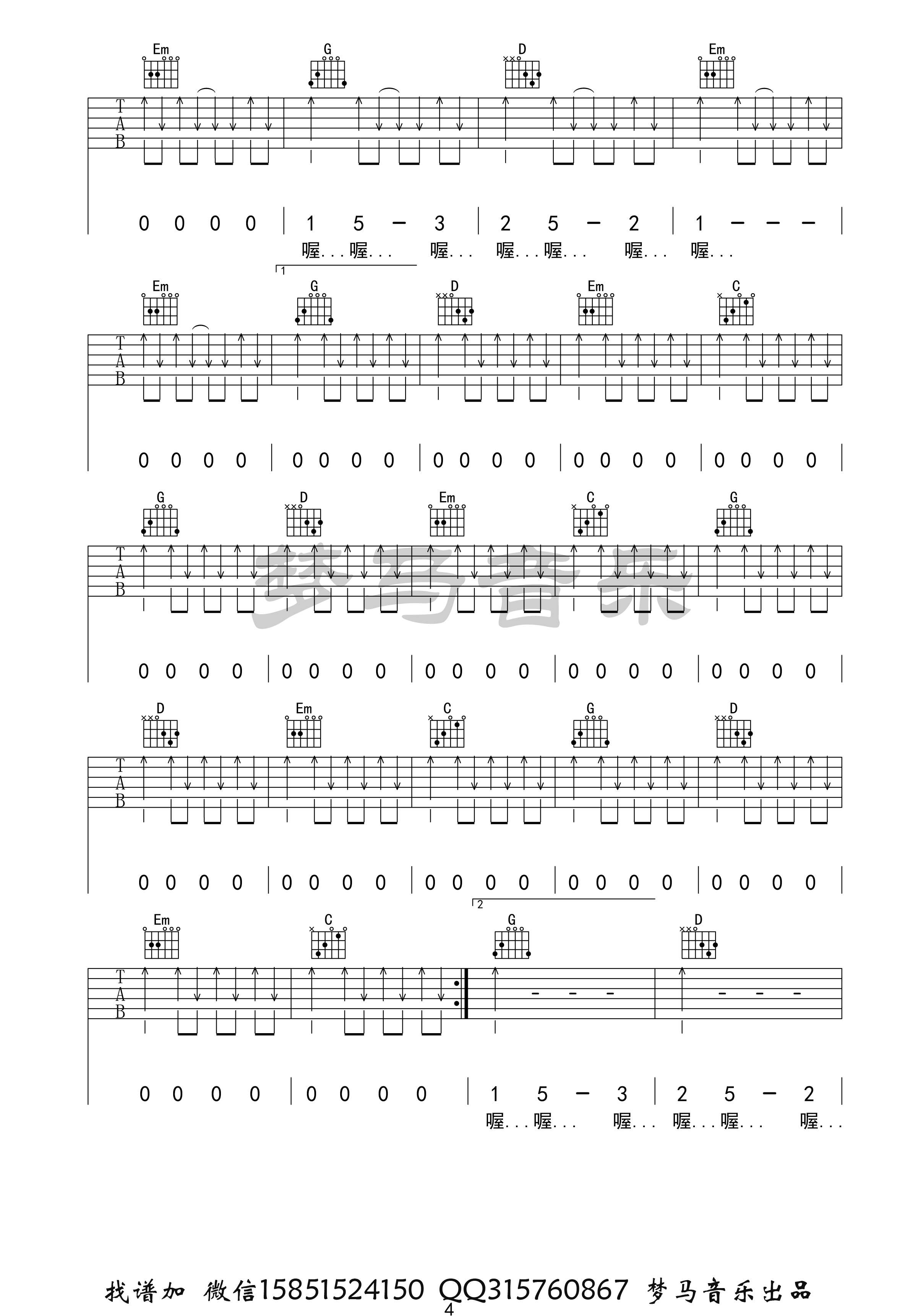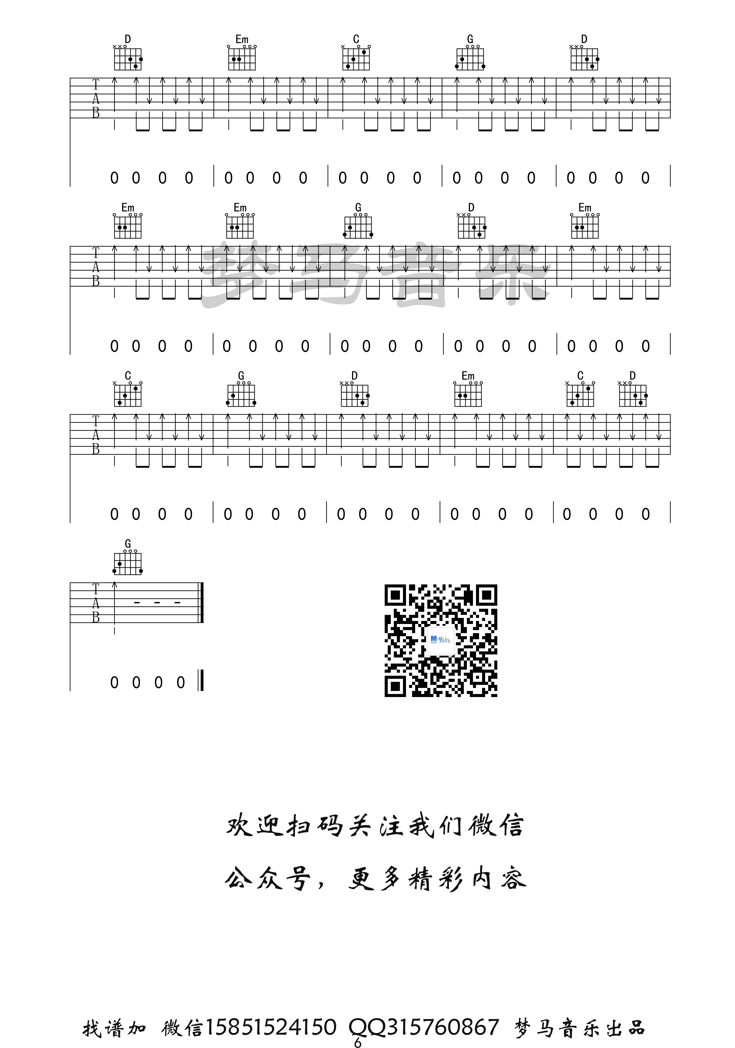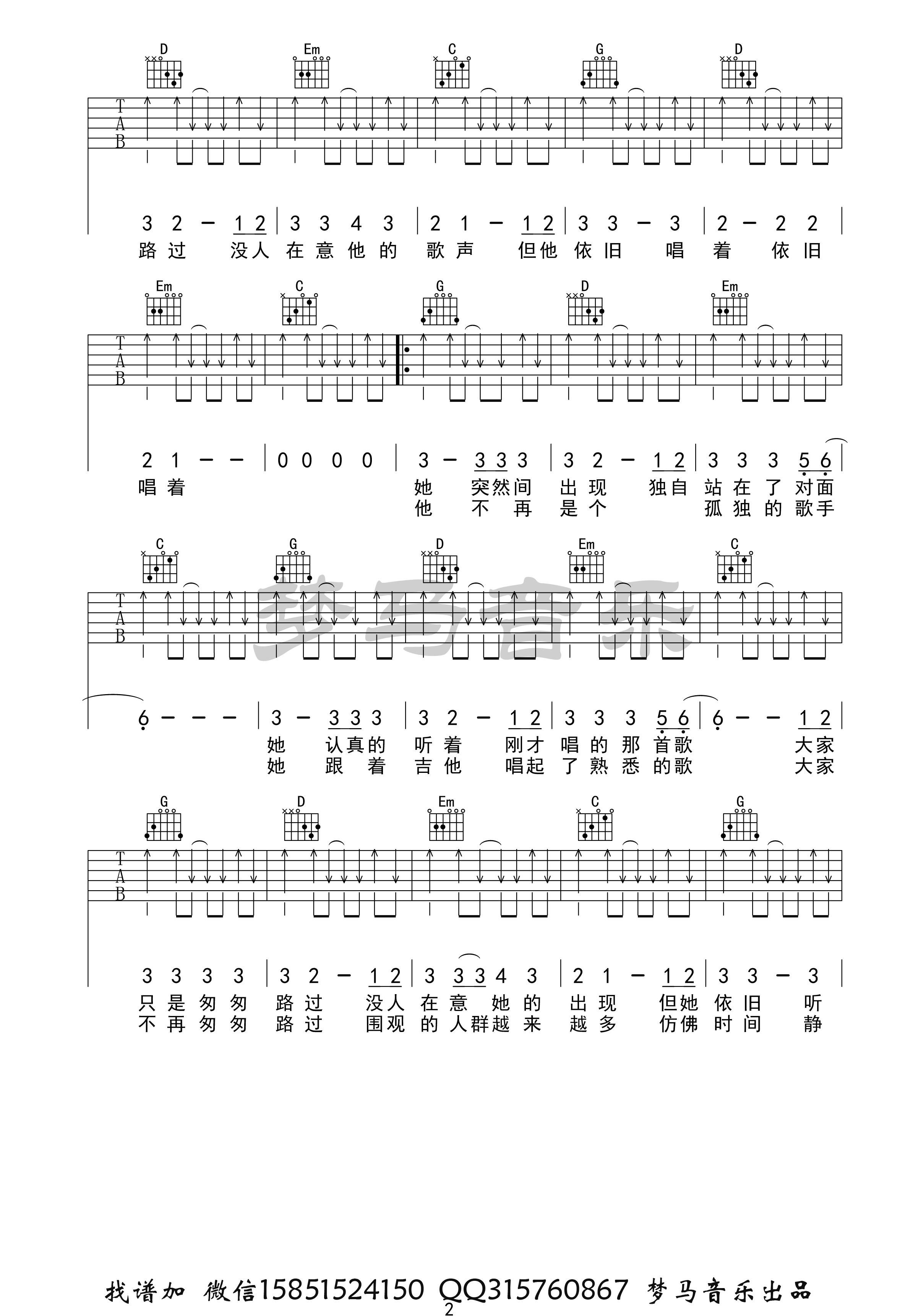 张闯《步行街的吉他手》吉他谱_G调简单版_弹唱_夏祯阳_六线谱