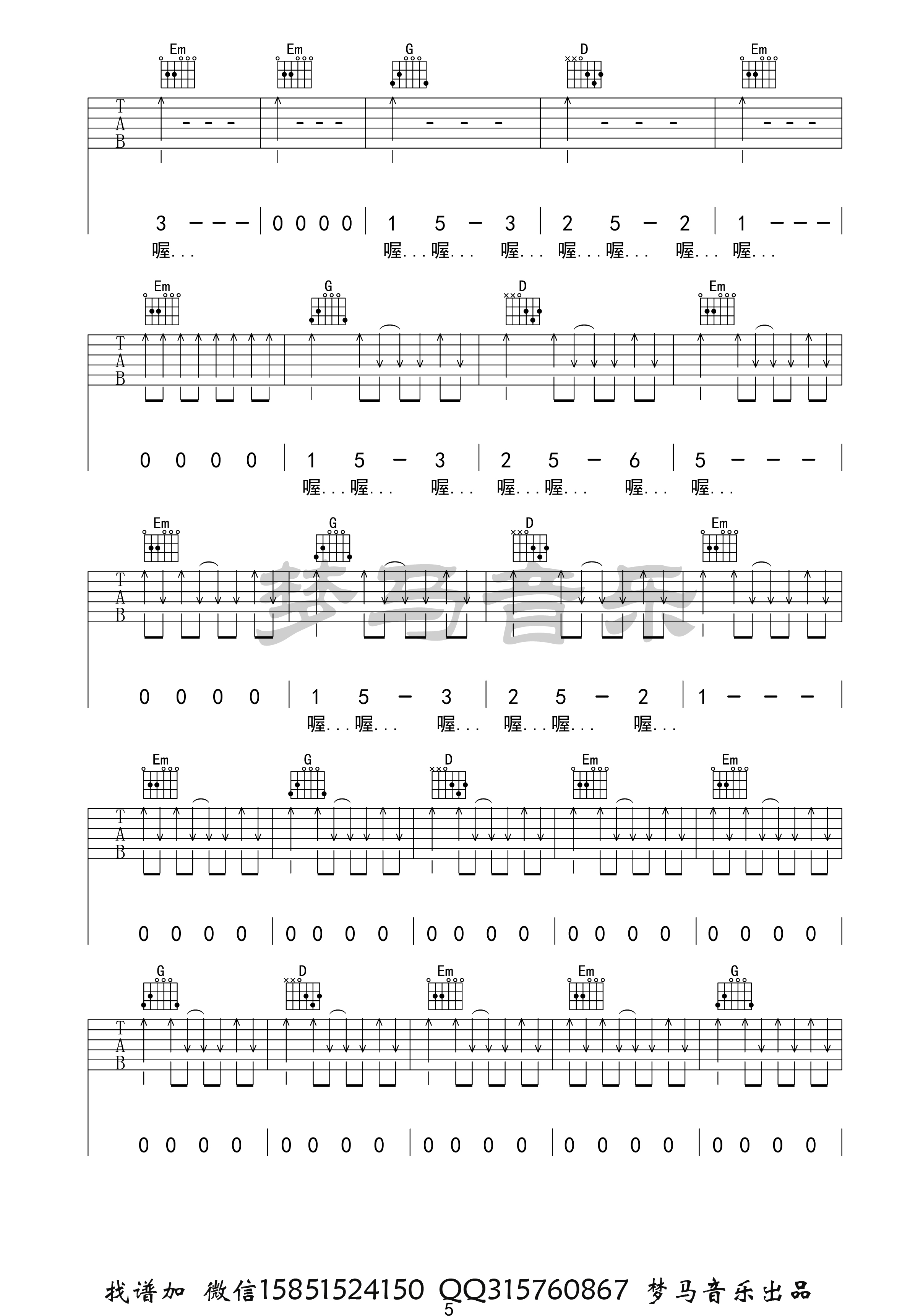 为你而来吉他谱_李健_G调扫弦版弹唱六线谱_高…