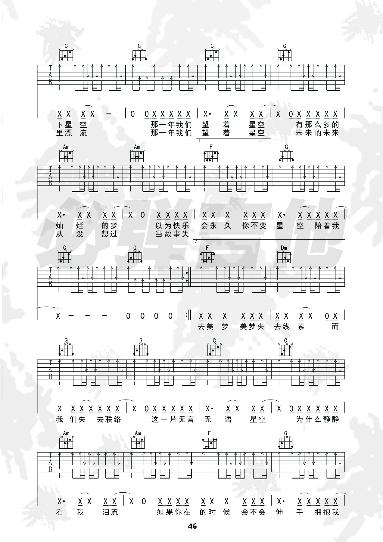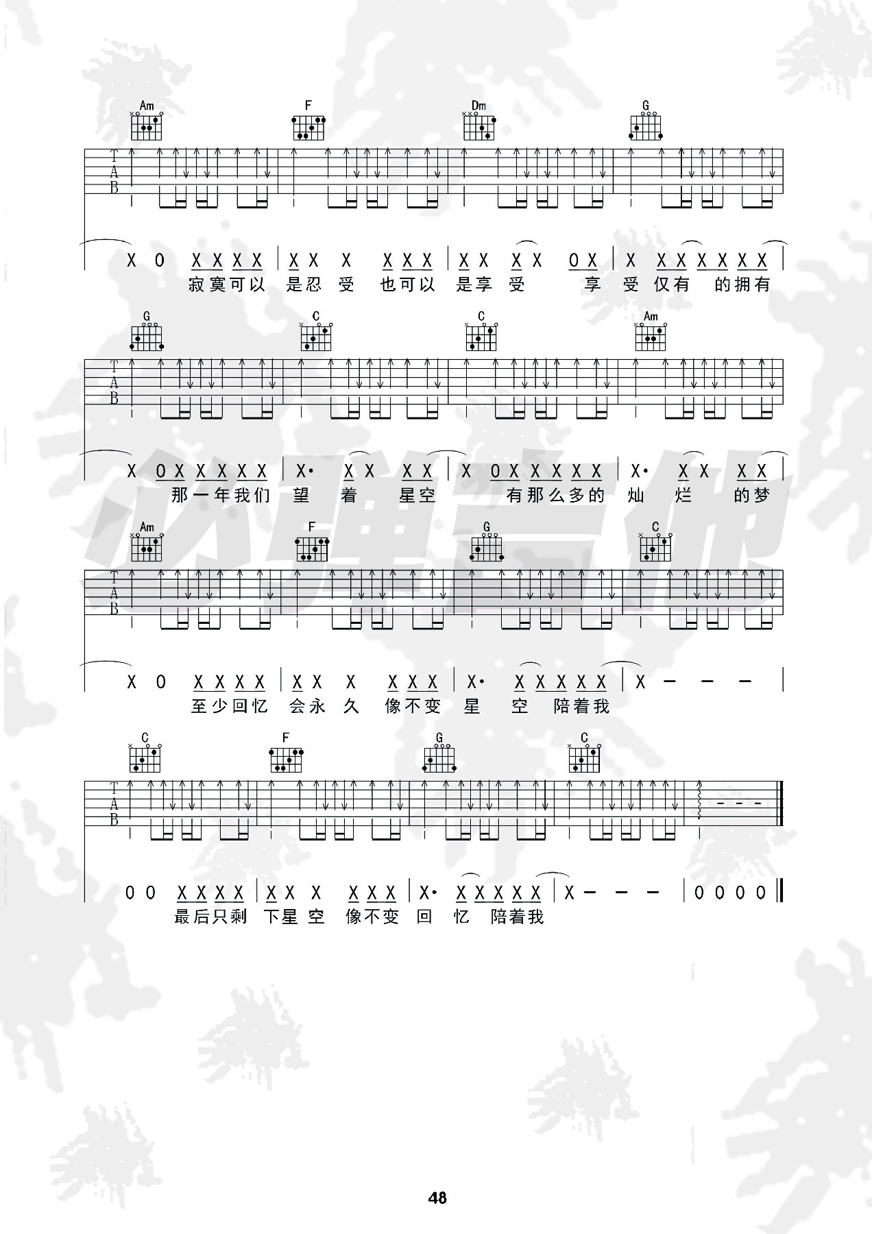Richard Clayderman《星空》吉他谱_C调简单版_弹唱_必弹吉他_六线谱