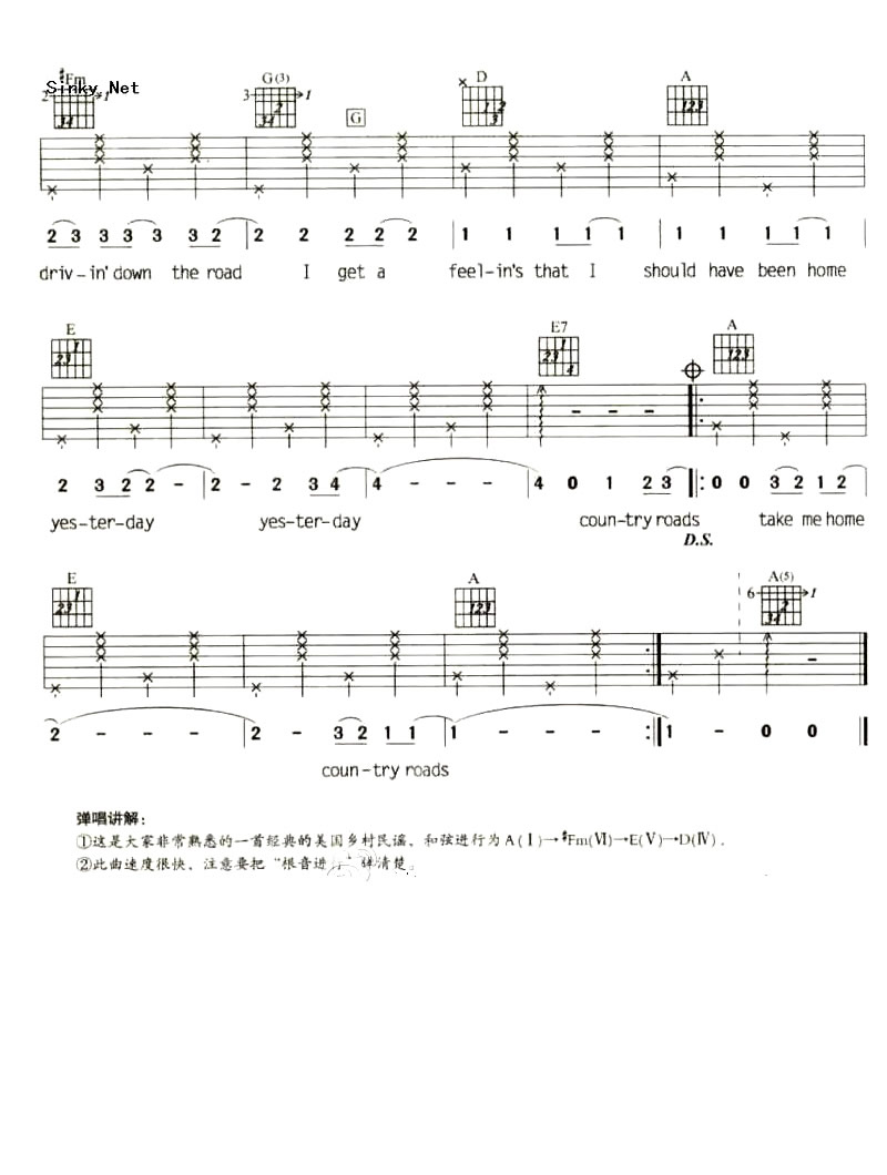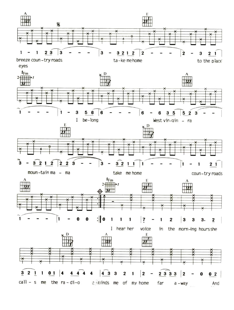 《Take Me Home Country Roads》吉他谱_John Denver_乡村路带我回家