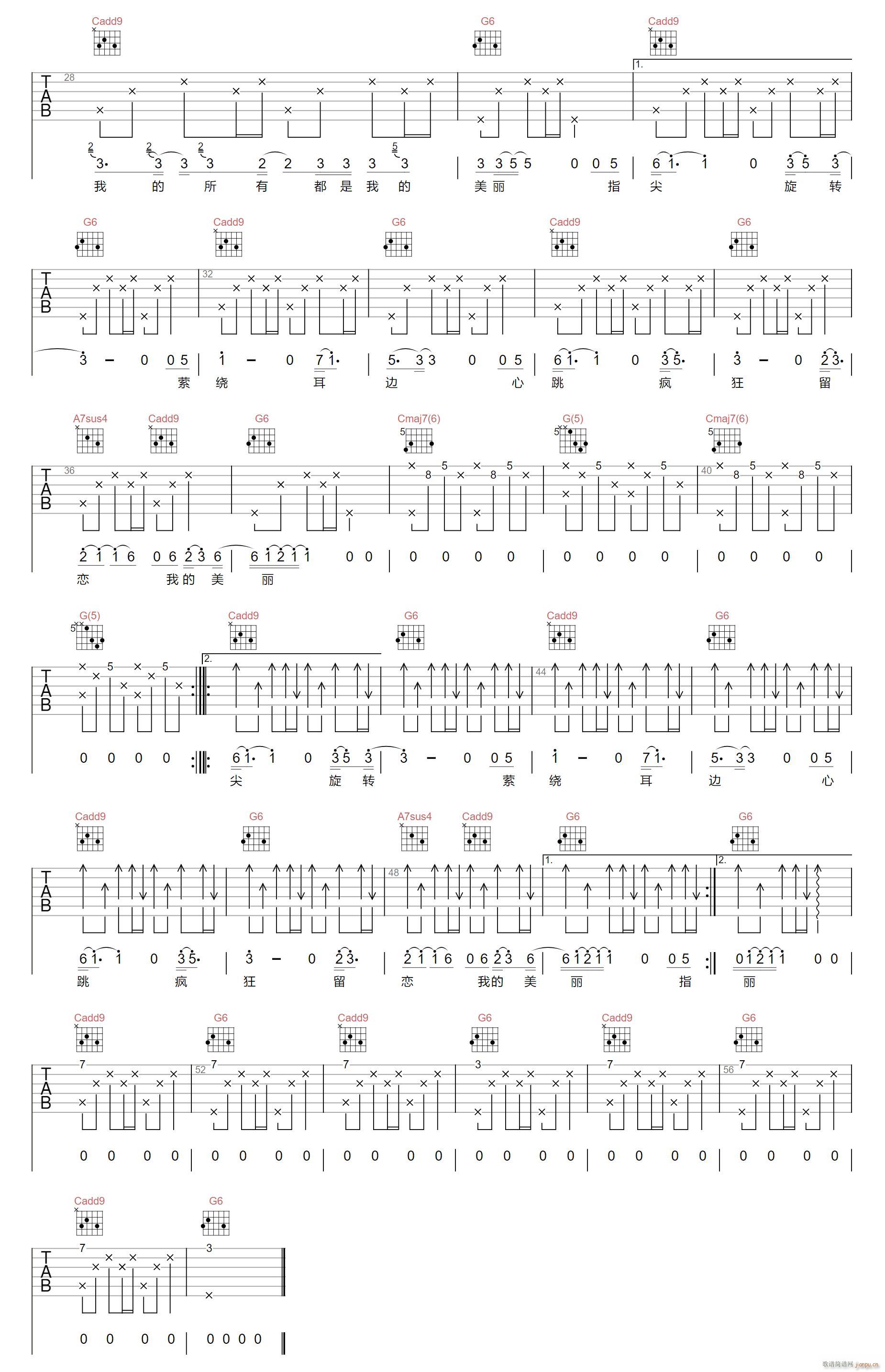我的美丽吉他谱_黄绮珊_A调弹唱六线谱_吉他谱_钢琴谱_简谱