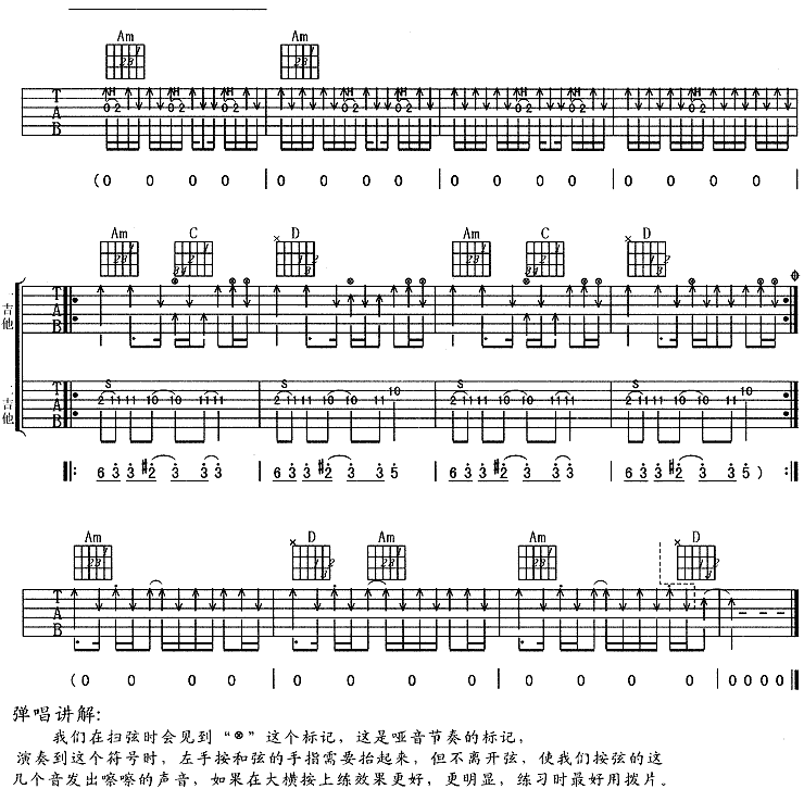 Casablanca卡萨布兰卡吉他谱_北非谍影 A调扫弦…