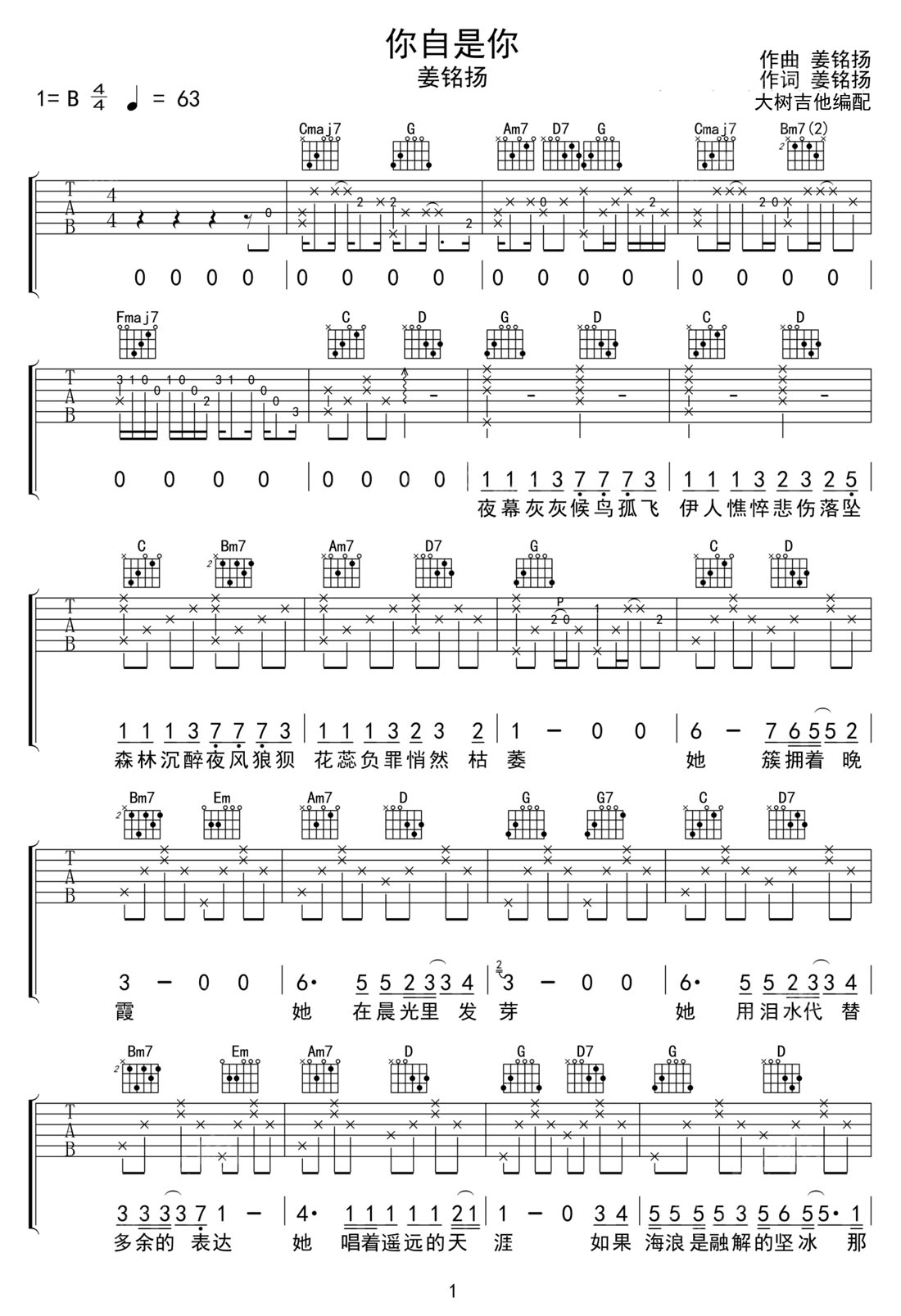 你自是你吉他谱_姜铭扬_G调原版弹唱谱_图片六线谱
