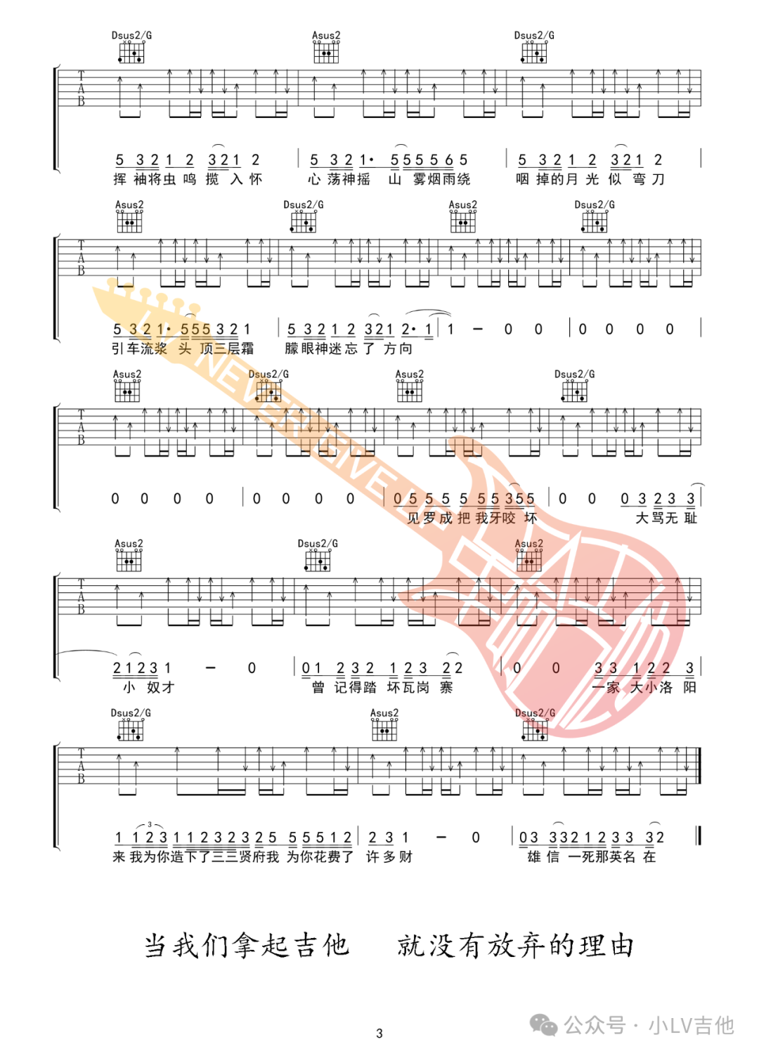 陈江河苏江水吉他谱,歌曲原调为G调,此版本的曲谱来源于@革命吉他,为4/4拍的节奏,按G调指法编配,共3张高清吉他谱,变调夹不夹为原歌曲的调式,演唱时可按个人音域选择合适的变调夹位置。 -