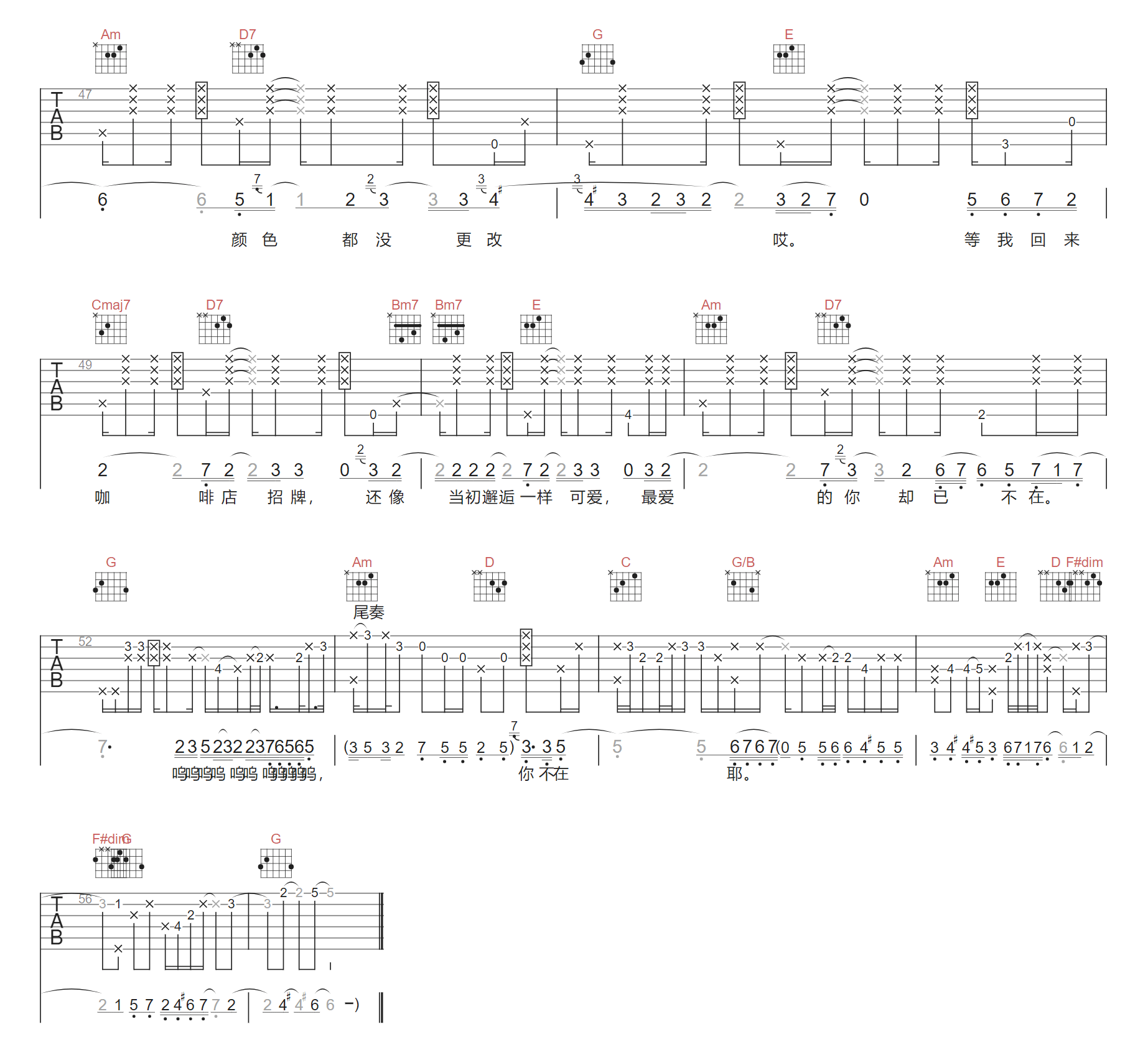 为你而来吉他谱_李健_G调扫弦版弹唱六线谱_高…